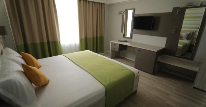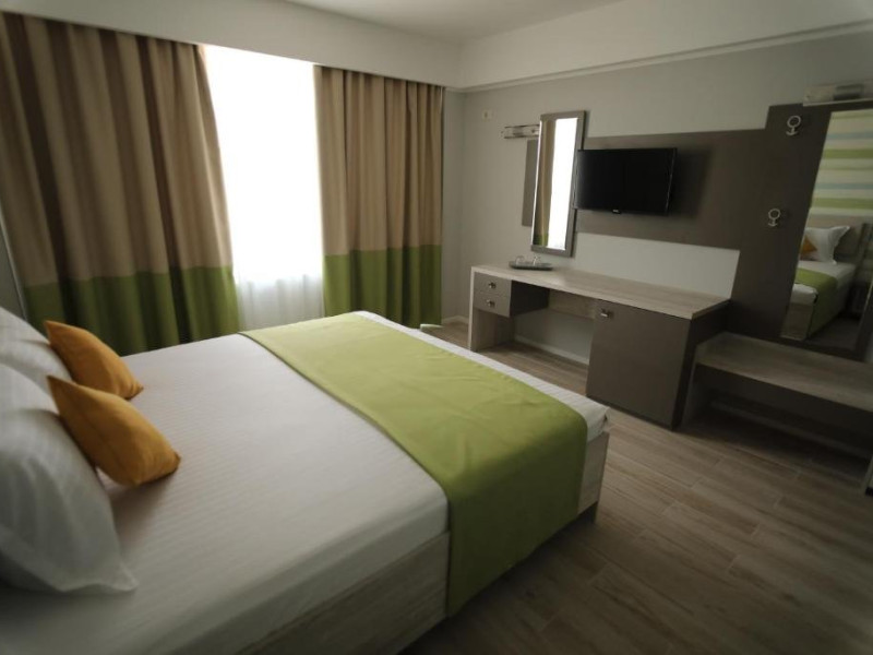 DESCRIERE CAMERE Dotari camere: aer conditionat, TV - LCD, internetWI- FI, pardoseala cu gresie, minibar, baie cu dus, prosoape, uscator de par, uscator de rufe, cosmeticepersonalizate in baie, pat bebe la cerere, acces pe baza de cartela magnetica. Camerele duble: cuprinde un spatiu deschis cu osurpafata de 25 mp, zona pentru dormit cu pat matrimonial (1.6/ 2m) sau twin (2paturi 90 cm/ 2m), baie cu dus, seif balcon, alocarea camerelor se face la receptiein momentul cazarii. Capacitate maxima cameradubla fara pat suplimentar: 2 adulti + 2 copii lt; 7 ani (neimpliniti). Capapcitate maxima cameradubla cu pat suplimentar: 2 adulti + 2 copii lt; 12 ani (neimpliniti) sau 3adulti. Apartamente cu 2 camere:cuprind un spatiu generos de 40 mp, format dintr-un living cu canapeaextensibila si un dormitory cu pat matrimonial, baie cu dus, balcon. Apartamentuldispune de espressor si capsule de cafea. Capacitate maxima: 2 adulti+ 2 copii sau 4 adulti.