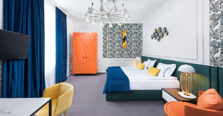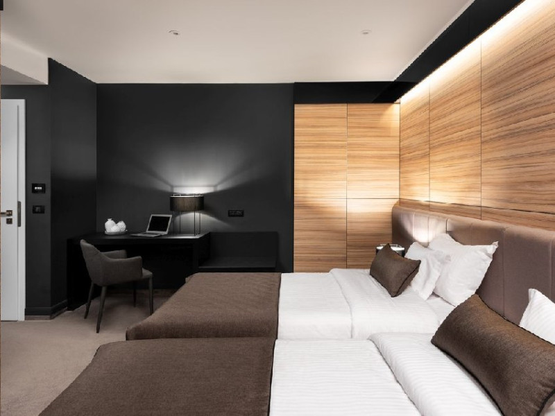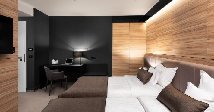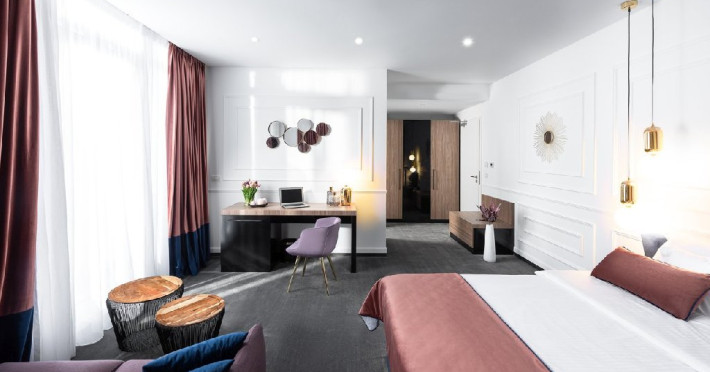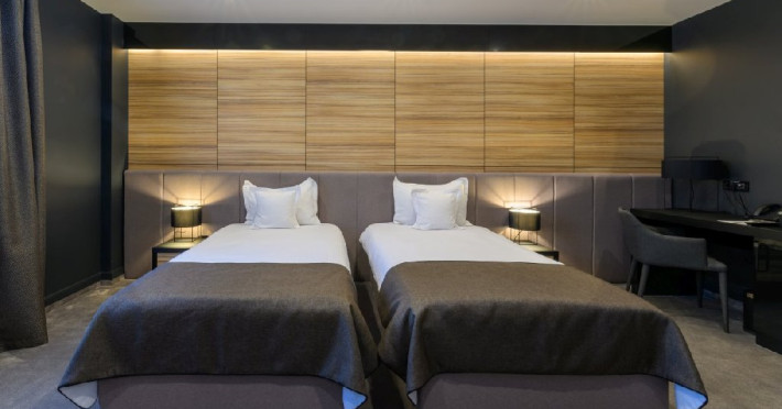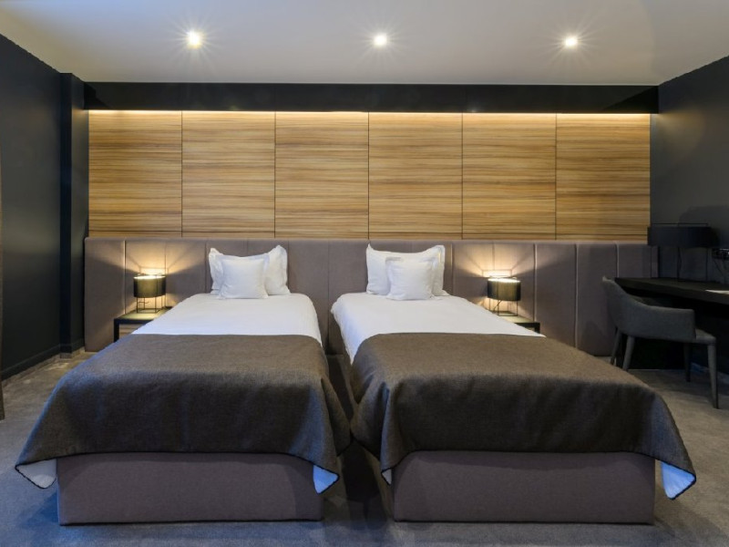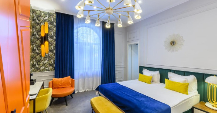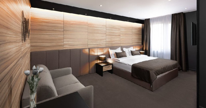 Hotelul de 4 stele este o cladire frumoasa, construita in stilul modern contemporan, dispune de 39 de camere de odihna luminoase si aerisite, dotate cu mobilier frumos si confortabil, corpuri de iluminat si textile speciale, cu aer conditionat, televizoare de ultima generatie, internet de mare viteza, camere de baie relaxante, cu pardoseala, gresie si obiecte sanitare de inalta calitate, intregul ambient cu un farmec aparte fiind completat de serviciile profesioniste ce creeaza o armonie deplina.
