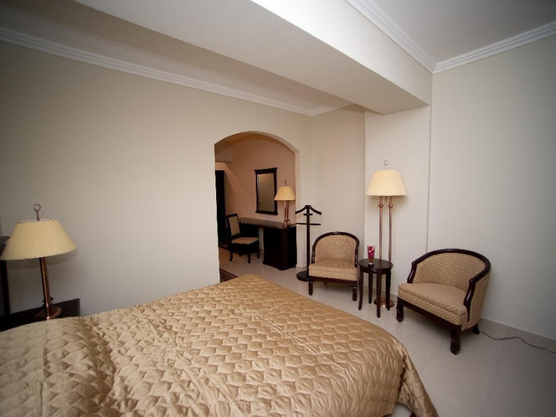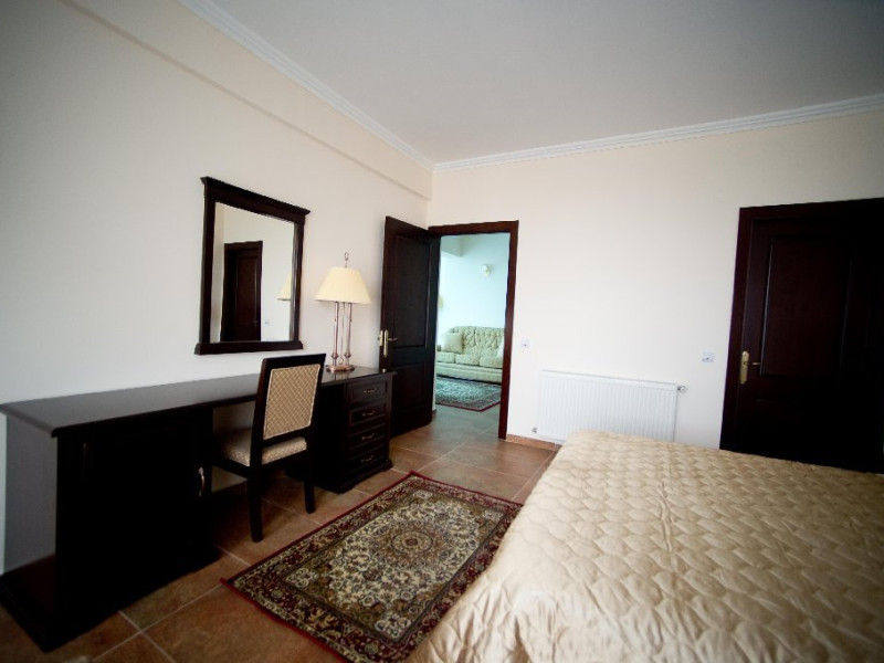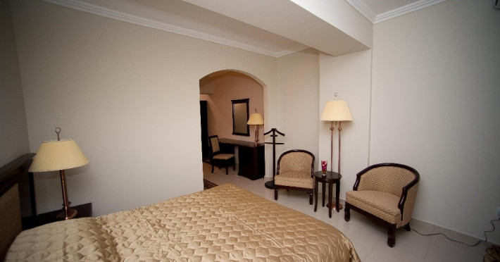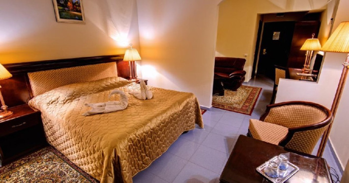 Apartamente Junior Suite: cele 5 Junior Suite situate la etajele 1,2,3,4 si 5, dispun de o suprafata a camerei de 43 mp, doua paturi queen size, terasa spatioasa (dotata cu masa si scaune), aer conditionat, minibar, seif, baie cu o cabina de dus, uscator de par, fierbator, fier cu masa de calcat, doua telefoane, in camera si baie, TV LCD digital, birou, internet wireless gratuit si cablu, cosmetice hotel.