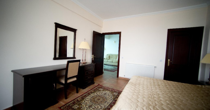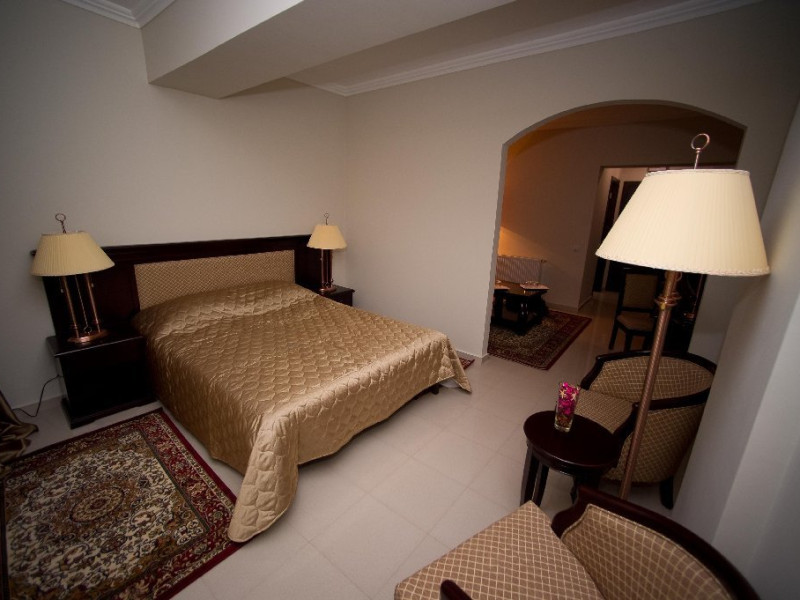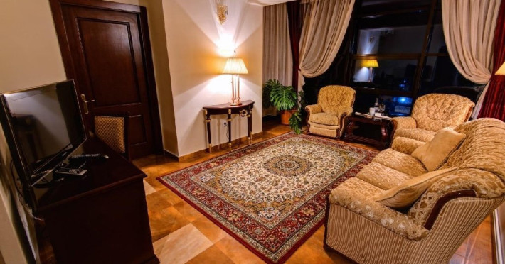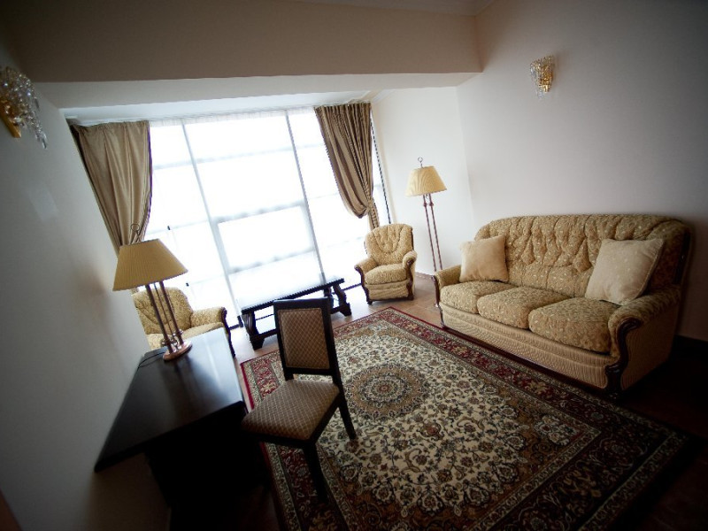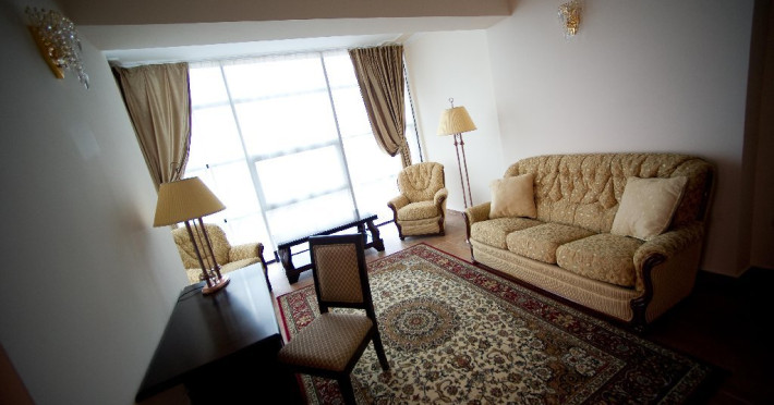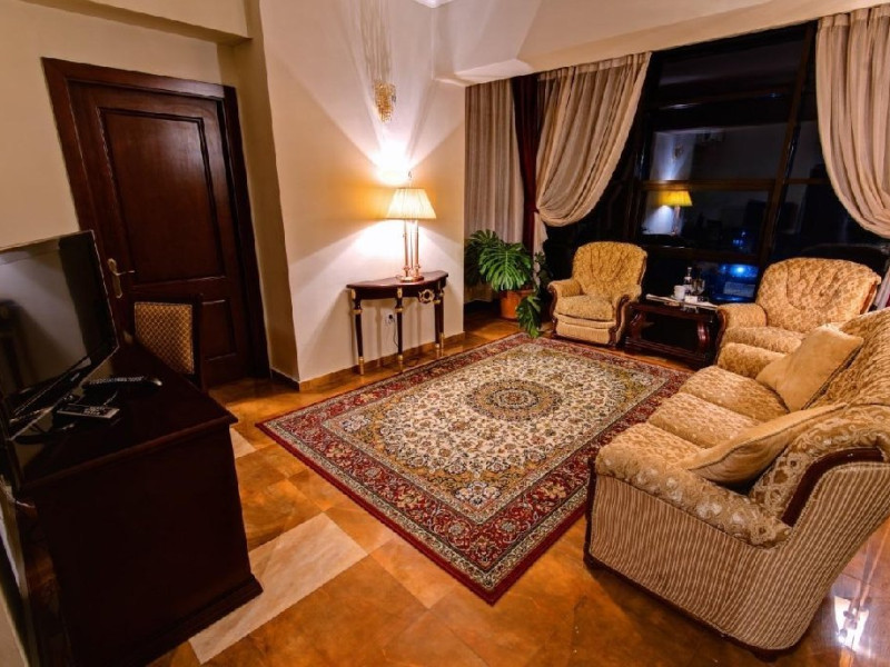 Apartamente Senior Suite: cele 6 Senior Suite (situate la etajele 1,2 si 3) cu o suprafaa de 55 mp, formate dintr-un dormitor cu pat matrimonial king size un living luminos si elegant (datorita peretilor de tip cortina) mobilat cu canapea extensibila si fotolii, terasa spatioasa (dotata cu masa si scaune), dispun de masa si scaune, aer conditionat, minibar, seif, baie cu bideu si dus, uscator de par, doua telefoane, in camera si baie, doua televizoare LCD, birou, internet wireless gratuit si cablu TV, DVD player, fierbator, fier cu masa de calcat, cosmetice hotel.