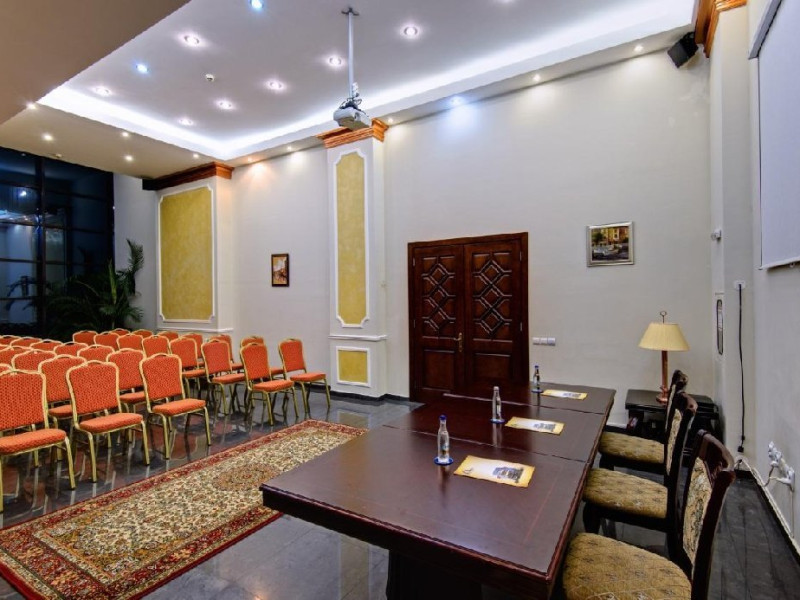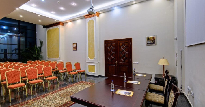 FACILITATI EVENIMENTE Sali de conferinta: 1 - 200 locuri, sonorizare, videoproiector, acces internet si wireless, aer conditionat, terasa; sala de sedinte 20 de locuri cu instalatie de sonorizare.