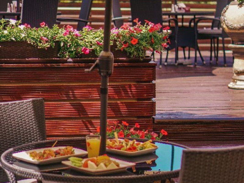 1. Cand gradul de ocupare este mai mic de 20% micul dejun si pranzul se servesc a la carte, in regim fisa cont cu valoare fixa. 2. Cand gradul de ocupare este mai mare de 20%, micul dejun, pranzul si cina se servesc in regim buffet suedez. Cina se serveste incepand cu prima zi de cazare, mai putin in ziua de check-out. In ultima zi de sedere masa inclusa este micul dejun pentru cazare cu mic dejun. Pentru varianta de cazare cu demipensiune si cea de cazare cu pensiune completa in ultima zi de sedere masa inclusa este micul dejun si pranzul. Pentru accesul la mese este obligatoriu purtarea bratarii inmanate la receptie in momentul cazarii. Pe durata sejurului la mesele bufet, inclusiv la micul dejun, nu este permisa parasirea spatiilor alocate servirii mesei cu bauturi sau produse alimentare. Pentru cazurile exceptionale, oaspetii se vor adresa Managerului de restaurant.