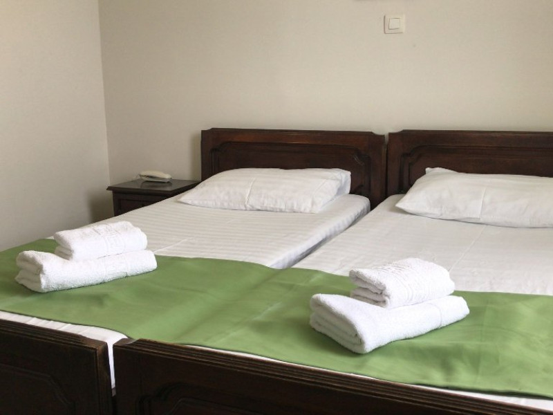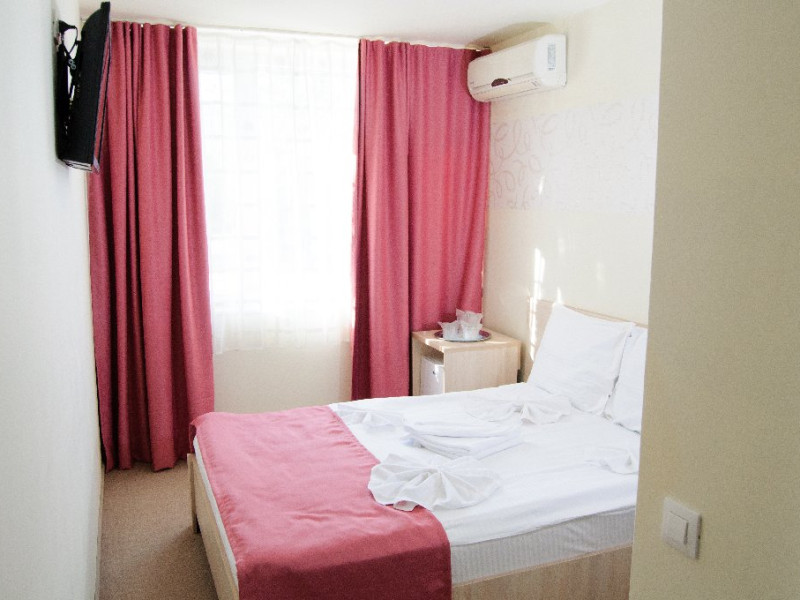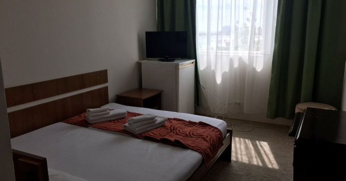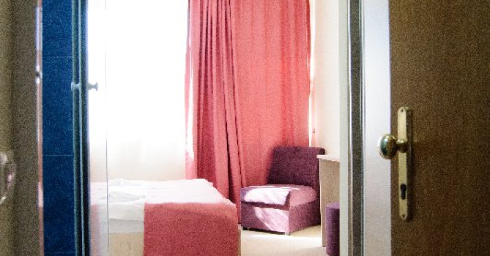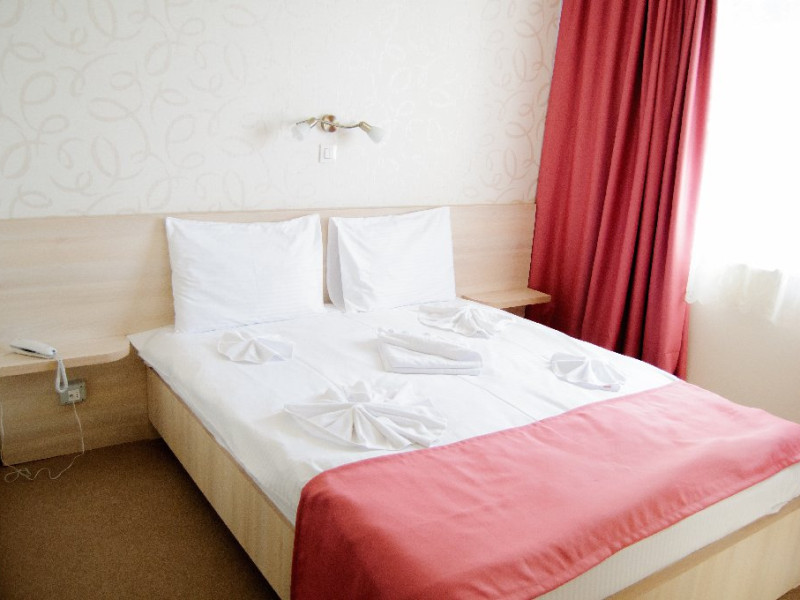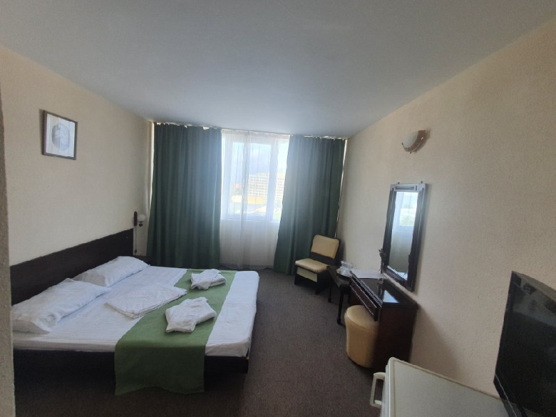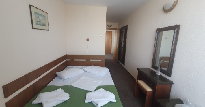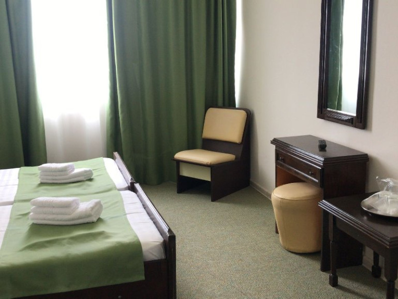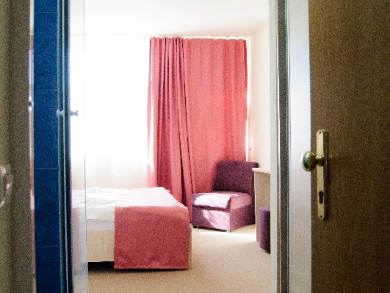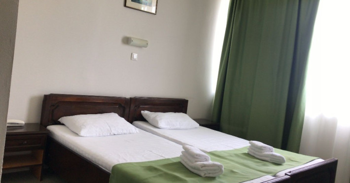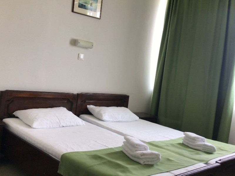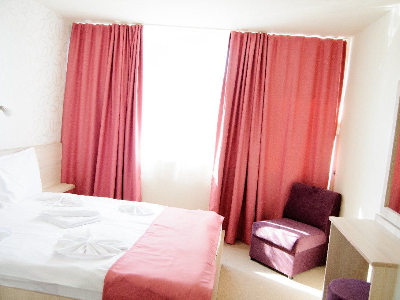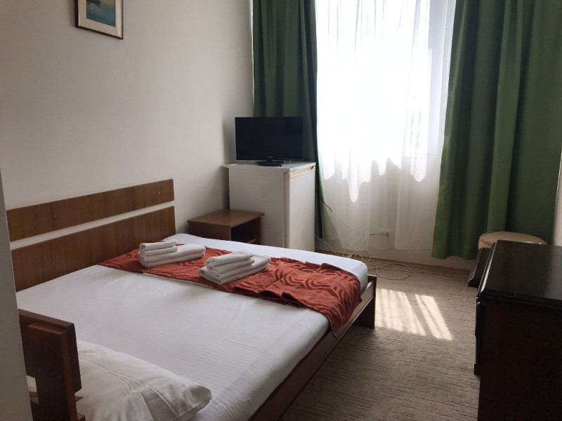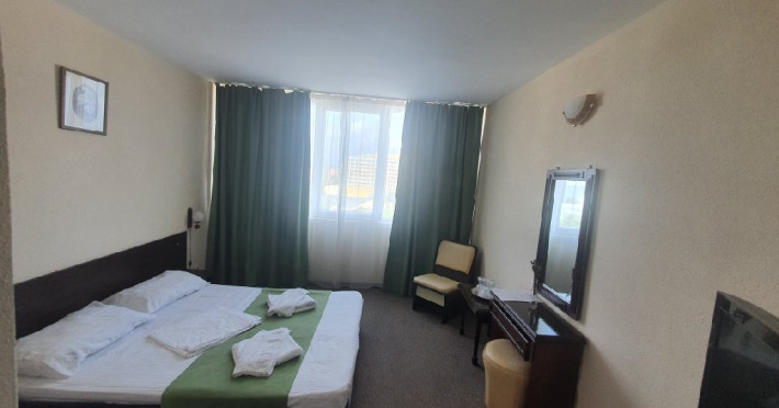 DESCRIERE CAMERE Dotari camere: televizor si cablu TV, racitor, baie cu dus. O parte din camerele duble twin si matrimoniale, precum si toate suitele, sunt prevazute cu aer conditionat. Camera Queen**: camera dubla cu pat matrimonial, fara aer conditionat, mobilier vechi, TV LED, frigider (maxim 2 adulti), etajele 2,3,4,5,6,7,8,9. Camera King** cu/ fara aer conditionat: camera dubla cu 2 paturi de o persoana alaturate sau pat matrimonial, mobilier vechi, TV LED, frigider (maxim 2 adulti si un copil sub 10 ani), etajele 2,3,4,5,8,9 (cele fara aer conditionat), etajele 2,3,4,5,6,7,8,9 (cele cu aer conditionat) Standard Suite**: garsoniera standard compusa din o camera cu 2 paturi de o persoana si o camera cu canapea extensibila, cu aer conditionat, mobilier vechi, TV LED, frigider, balcon (maxim 3 adulti si un copil sub 10 ani), etajele 2,3,4,5,8,9 Family Suite ***: garsoniera compusa din o camera cu pat matrimonial si o camera cu canapea extensibila, cu aer conditionat, mobilier nou, TV LED, frigider, balcon (maxim 3 adulti si un copil sub 10 ani), etaj 6-7 Studio Queen***: camera dubla cu pat matrimonial, fara aer conditionat, mobilier nou, TV LED, frigider (maxim 2 adulti), parter Studio King*** cu/ fara aer conditionat: camera dubla cu pat matrimonial, mobilier nou, TV LED, frigider (maxim 2 adulti si un copil sub 10 ani), parter Studio Suite***: garsoniera modernizata compusa din o camera cu pat matrimonial si o camera cu canapea extensibila, cu aer conditionat, mobilier nou, TV LED, frigider, balcon (maxim 3 adulti si un copil sub 10 ani), etaj 1.