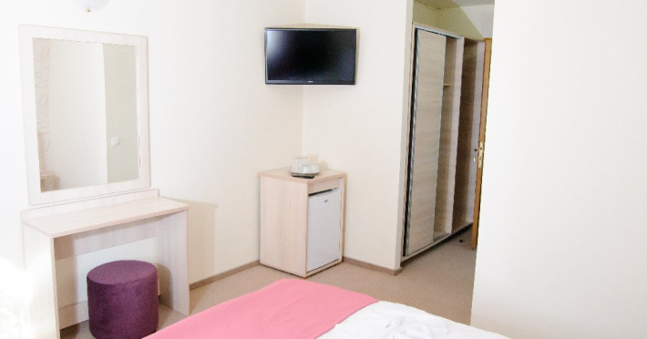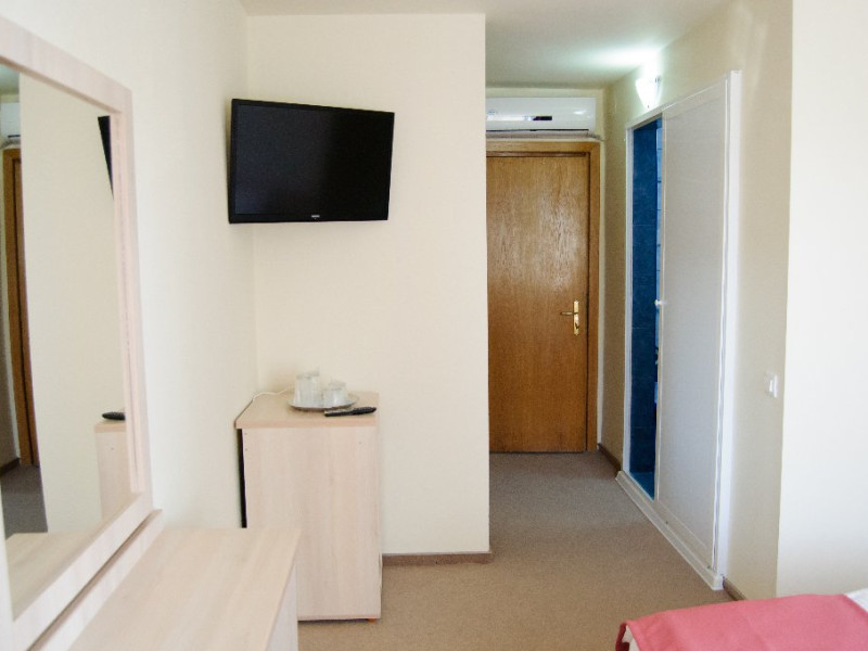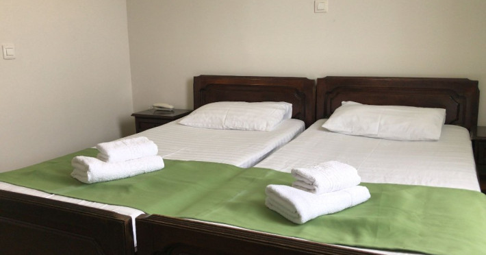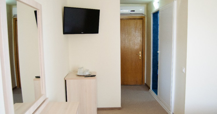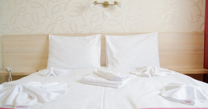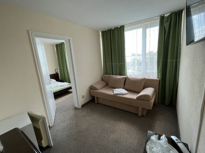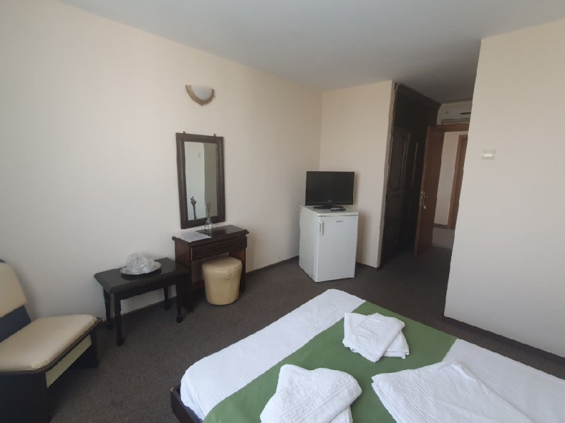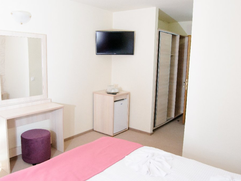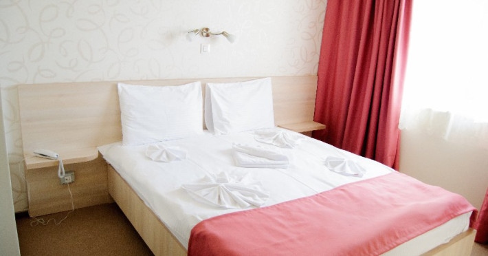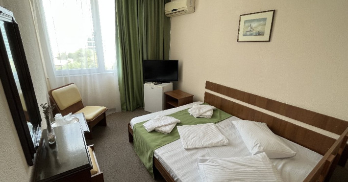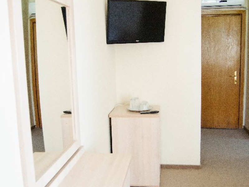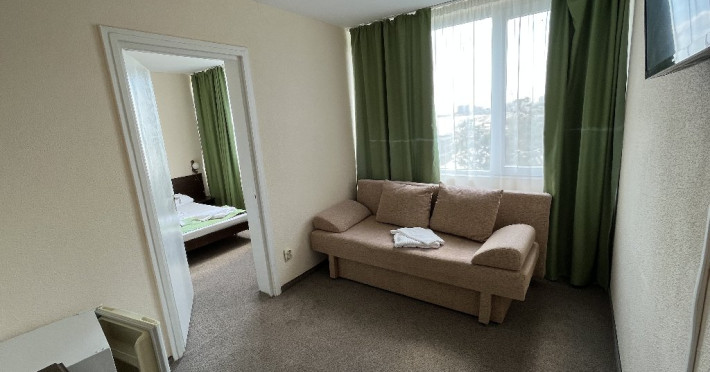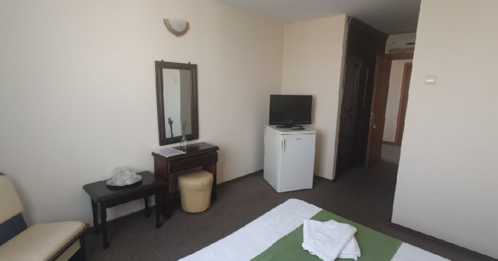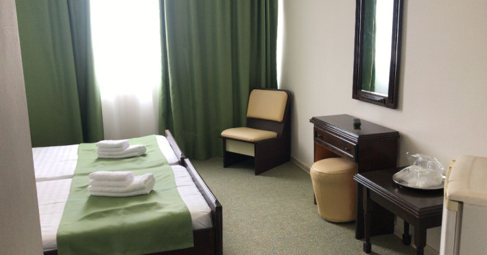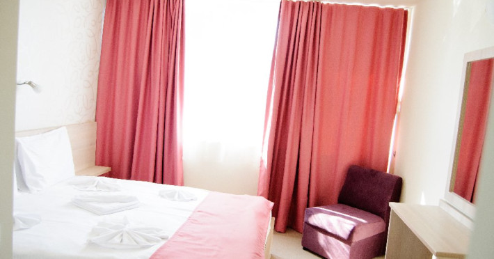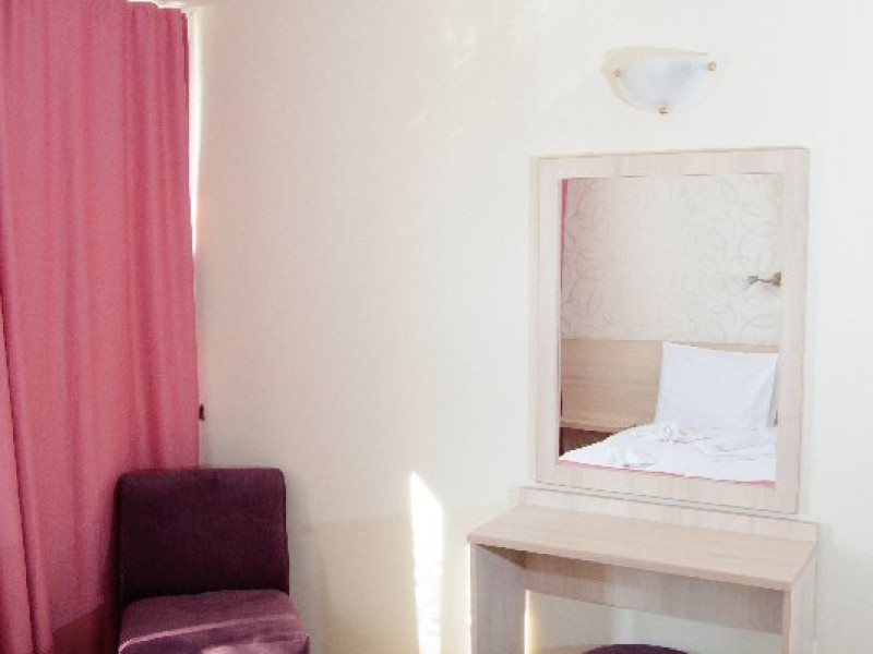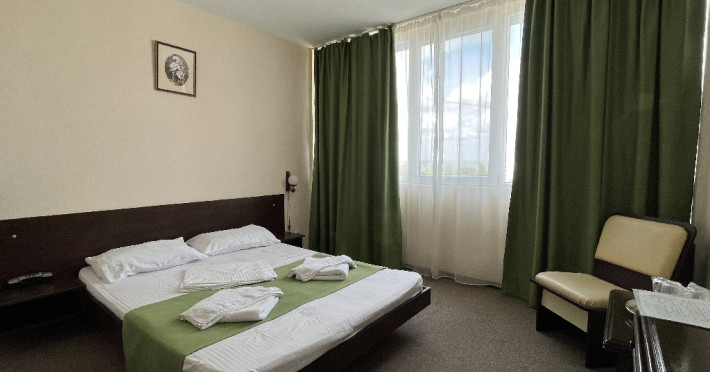DESCRIERE CAMERE Dotari camere: televizor si cablu TV, racitor, baie cu dus. O parte din camerele duble twin si matrimoniale, precum si toate suitele, sunt prevazute cu aer conditionat. Camera Queen**: camera dubla cu pat matrimonial, fara aer conditionat, mobilier vechi, TV LED, frigider (maxim 2 adulti), etajele 2,3,4,5,6,7,8,9. Camera King** cu/ fara aer conditionat: camera dubla cu 2 paturi de o persoana alaturate sau pat matrimonial, mobilier vechi, TV LED, frigider (maxim 2 adulti si un copil sub 10 ani), etajele 2,3,4,5,8,9 (cele fara aer conditionat), etajele 2,3,4,5,6,7,8,9 (cele cu aer conditionat) Standard Suite**: garsoniera standard compusa din o camera cu 2 paturi de o persoana si o camera cu canapea extensibila, cu aer conditionat, mobilier vechi, TV LED, frigider, balcon (maxim 3 adulti si un copil sub 10 ani), etajele 2,3,4,5,8,9 Family Suite ***: garsoniera compusa din o camera cu pat matrimonial si o camera cu canapea extensibila, cu aer conditionat, mobilier nou, TV LED, frigider, balcon (maxim 3 adulti si un copil sub 10 ani), etaj 6-7 Studio Queen***: camera dubla cu pat matrimonial, fara aer conditionat, mobilier nou, TV LED, frigider (maxim 2 adulti), parter Studio King*** cu/ fara aer conditionat: camera dubla cu pat matrimonial, mobilier nou, TV LED, frigider (maxim 2 adulti si un copil sub 10 ani), parter Studio Suite***: garsoniera modernizata compusa din o camera cu pat matrimonial si o camera cu canapea extensibila, cu aer conditionat, mobilier nou, TV LED, frigider, balcon (maxim 3 adulti si un copil sub 10 ani), etaj 1.