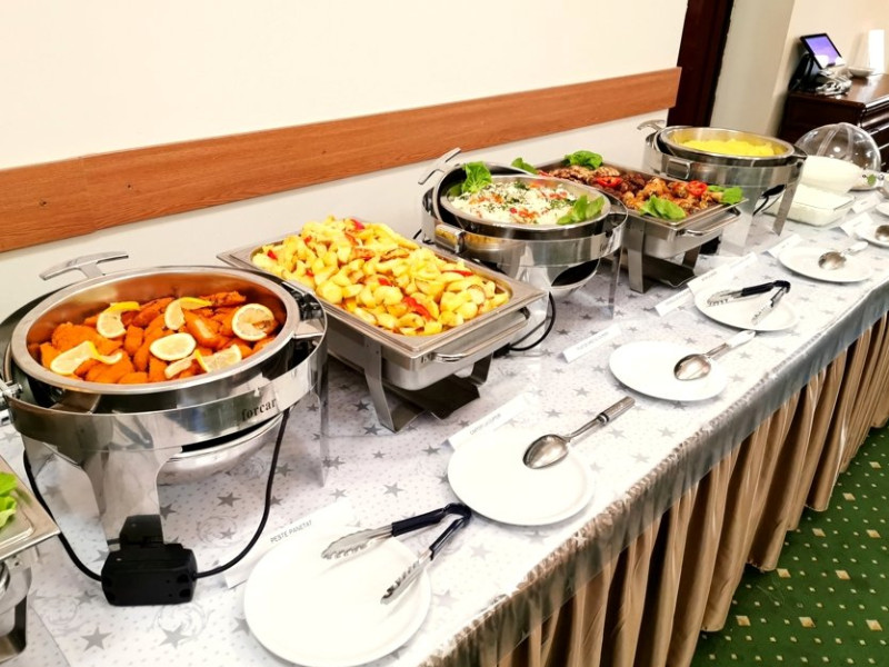 SERVICII DE MASA Restaurantul hotelului situat la etajul 1, are o capacitate de 180 locuri. Pot fi servite meniuri traditionale si internationale, in regim bufet suedez sau a la carte. Barul de zi, cu terasa, are o capacitate de 100 de locuri si este situat la parterul hotelului, in zona de lobby.