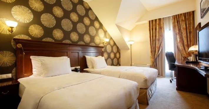 FACILITATI UNITATE Restaurant, parcare proprie - exterioara si interioara gratuita si supravegheata, acces persoane cu dizabilitati, loc de joaca pentru copii, piscina interioara, sala de fitness, sauna, baie de aburi, internet, pastrare obiecte de valoare, bar, terasa de mari dimensiuni, receptie deschisa nonstop, ziare, lift, camera de bagaje, centru de business, aer conditionat. Servicii: serviciu de trezire, room service, serviciu de spalatorie, serviciu de calcatorie, asistenta la transportul bagajelor, aparat de lustruit pantofi, servicii de fax, imprimare, curierat, transfer de la/la aeroport, bancomat, serviciu de concierge. Nu se accepta animale de companie.