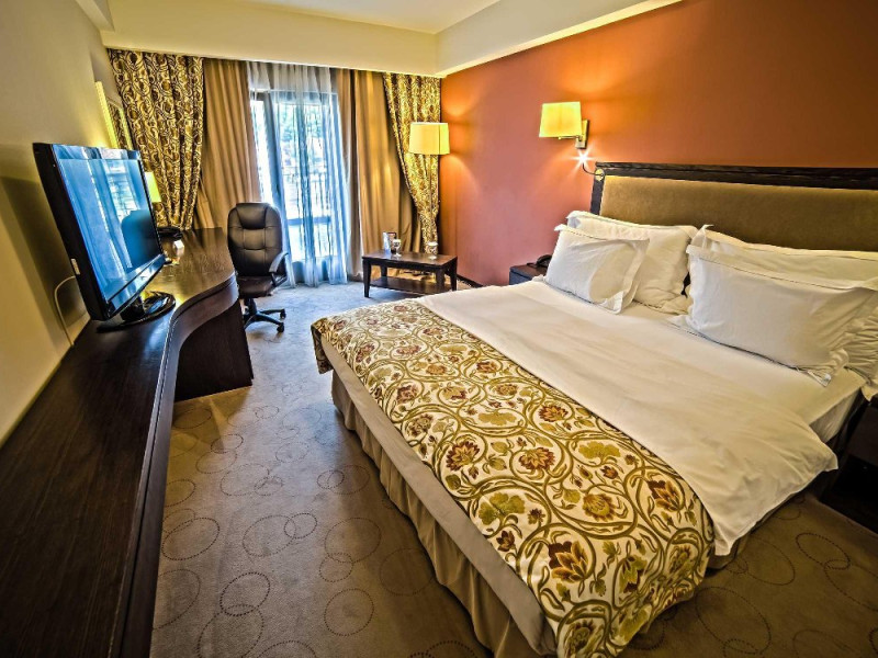 DESCRIERE CAMERE Dotari camere: aer conditionat, TV, minibar, seif, baie cu cada, baie cu dus, internet - wireless gratuit, uscator de parhalat si papuci de baie, articole de toaleta gratuite, telefon, birou de lucru, aparat de preparare cafea. Numar total camere: 74 - single, duble, studio, apartament.
