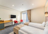 Camera dubla Executive Twin are o suprafata de 28 m2 toate cu aer conditionat, dotate cu baie cu dus, uscator de par, minibar, telefon si TV LCD, halat de baie, fierbator, papuci, fotoliu extensibil. Dimensiune pat: 2 x 90 cm x 200 cm.