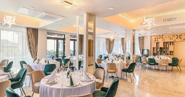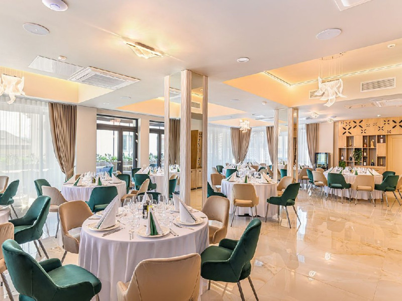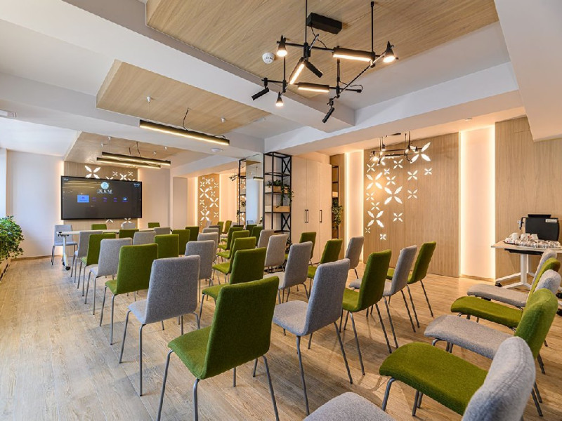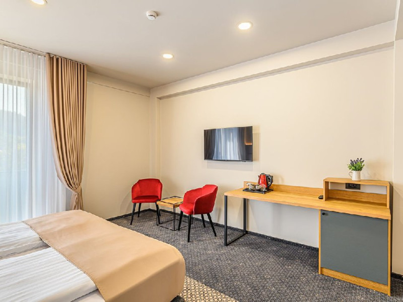 DESCRIERE UNITATE DE CAZARE Hotel Dukat are 31 de camere amenajate cu cea mai mare atentie la detalii. Camerele sunt spatioase, bine izolate fonic si termic, dotate cu saltele si lenjerii de pat de inalta calitate, plus o serie de facilitati moderne, cum ar fi televizoare cu ecran plat, climatizare reglabila individual, minibar, cana fierbator. Cat despre privelistea oferita, camerele sunt pozitionate pe doua orientari geografice diferite.