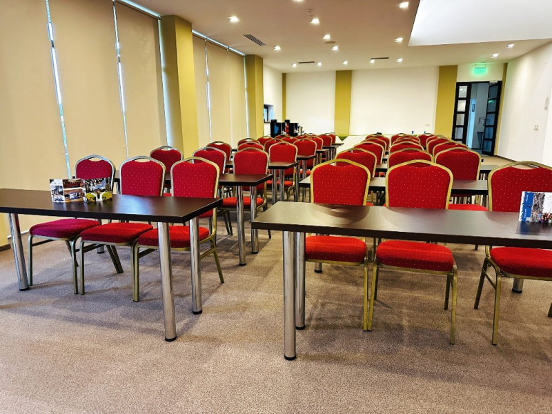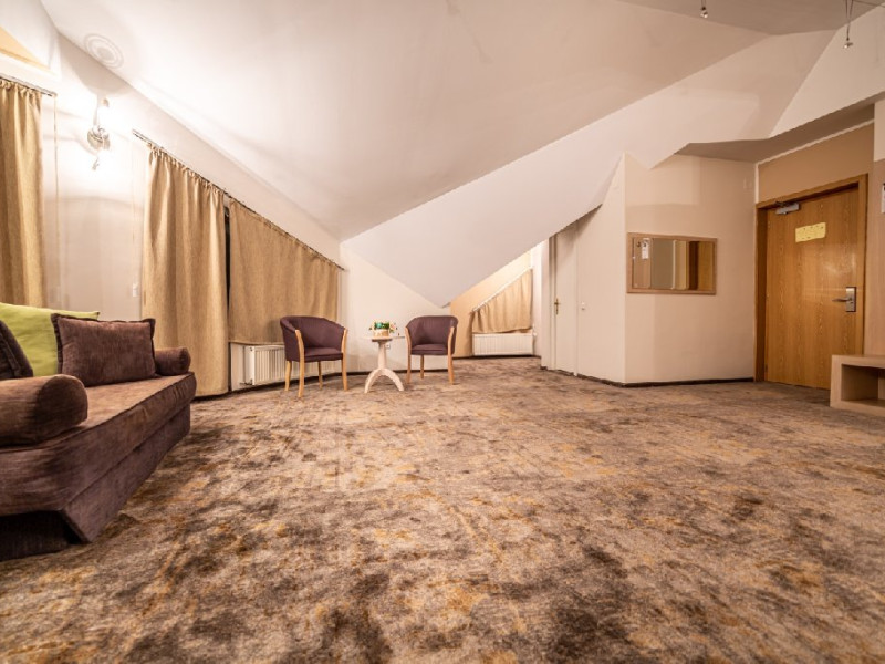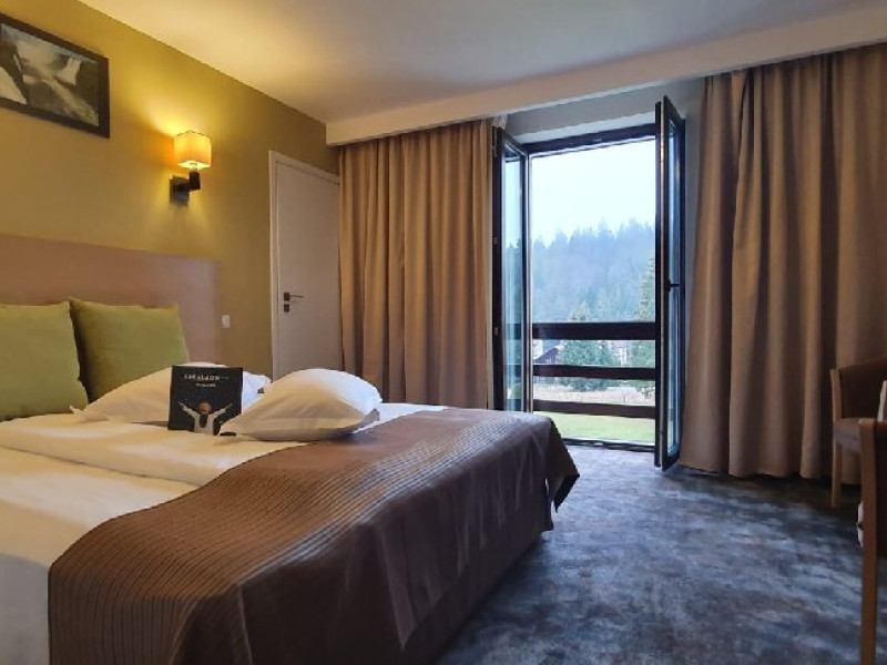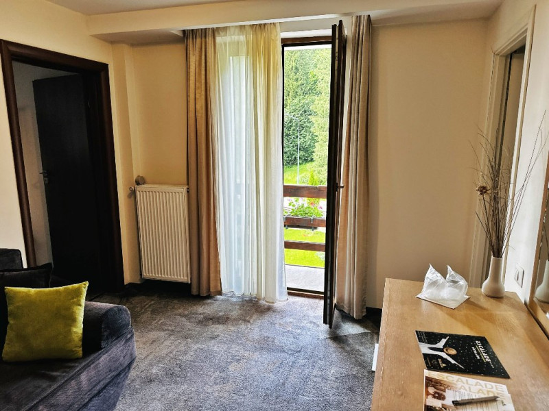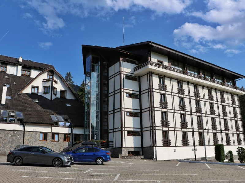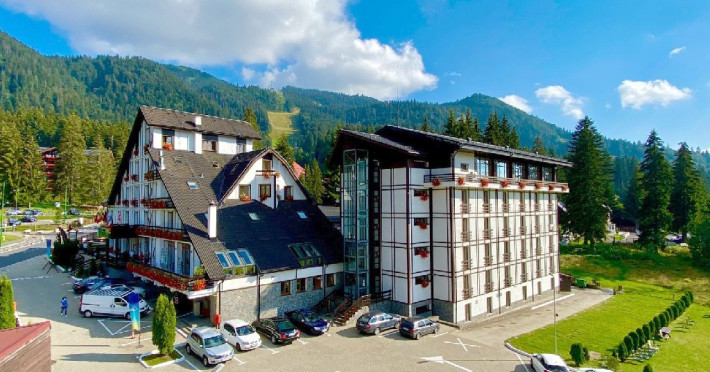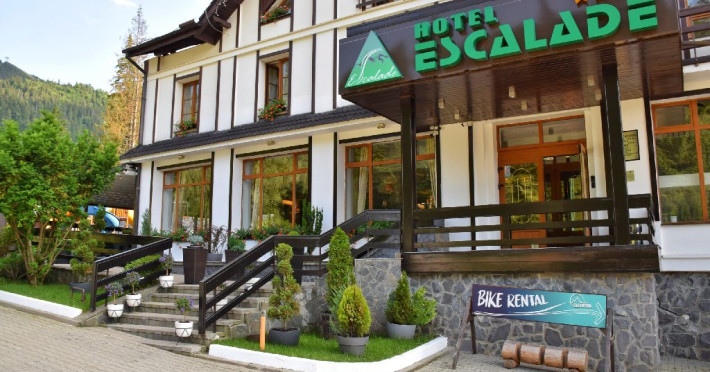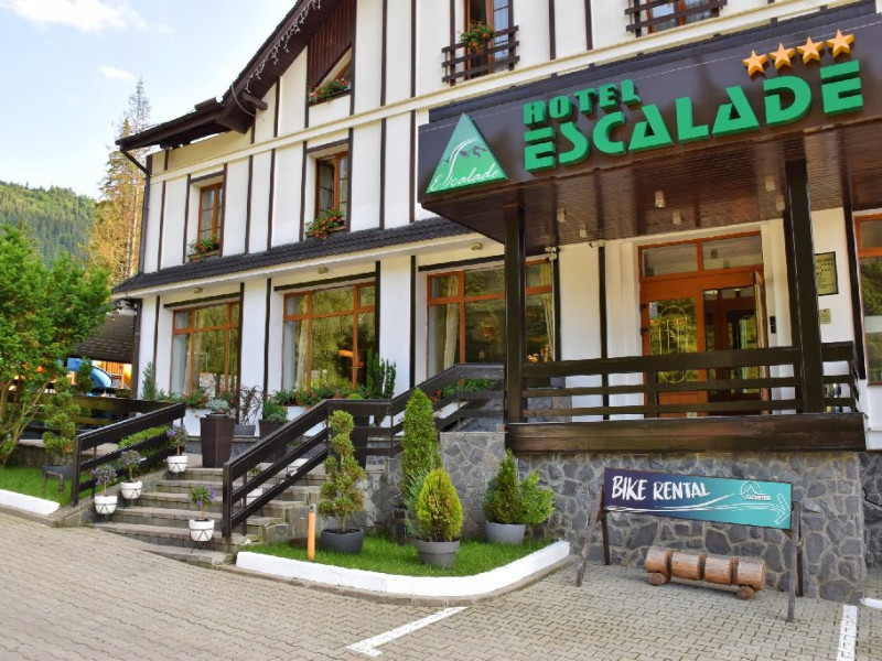 INFORMATII GENERALE Hotel Escalade se afla in statiunea Poiana Brasov, la o distanta de numai 100 m de telecabina, telegondola, partia de ski si snowboard, patinoar si partia de saniute. DESCRIERE UNITATE DE CAZARE Indiferent de sezon, Escalade Hotel isi propune sa ofere oaspetilor sai un sejur imbietor la standarde ridicate, fiind o alegere potrivita pentru cei care, fie doresc sa isi petreaca o vacanta linistita in familie, fie sa practice sporturile de iarna sau sa organizeze un eveniment festiv sau o conferinta. FACILITATI UNITATE Hotelul dispune de parcare proprie, restaurant cu terasa, centru SPA, sala fitness, locuri si sali de joaca pentru copii, bowling, sali de conferinte si evenimente. Centrul SPA are dotari de ultima generatie si ofera acces la piscina interioara, jacuzzi, sauna (uscata sau umeda), salon de masaj si centru fitness. De asemenea, pista de bowling sta la dispozitia oaspetilor, precum si o sala de joaca si jocuri atat pentru cei mici cat si pentru cei mari, dotata cu masa de biliard, darts, tenis de masa. Hotel Escalade dispune de un spatiu de joaca pentru copii si in exteriorul unitatii de cazare, langa terasa. DESCRIERE CAMERE Camerele Standard 3* au o suprafata de 18 mp si dispun de pat matrimonial sau doua paturi twin. Camerele Executive 4* au suprafata de 20 mp si dispun de pat matrimonial sau doua paturi twin. Apartamentele 3* cu suprafata de 35 mp au un pat matrimonial si o canapea extensibila. Unele camere sunt dotate cu balcon mic. Printre dotarile camerelor se numara: baie proprie, TV, Wi-Fi, minibar, senzor incendiu, telefon, uscator de par. LOCALIZARE Hotel Escalade se afla in statiunea Poiana Brasov, la o distanta de numai 100 m de telecabina, telegondola, partia de ski si snowboard, patinoar si partia de saniute. ATRACTII TURISTICE Masivul Postavaru, Muntele Tampa, Canionul Sapte Scari, Biserica Neagra, Pietrele lui Solomon. POLITICI Nu se accepta animale de companie. SERVICII DE MASA Restaurantul Lobby isi ateapta in fiecare zi clientii la un mic dejun savuros, un pranz sau o cina cu preparate traditionale si internationale. Barul de zi are o capacitate de 70 locuri si este locul ideal unde putei savura cocktail-uri si bauturi rafinate, insotite de momente de relaxare. Terasele hotelului ofera o priveliste deosebita imbinata cu linitea si aerul curat al Muntilor Carpati. FACILITATI COPII Pista de bowling sta la dispozitia oaspetilor, precum si o sala de joaca si jocuri atat pentru cei mici cat si pentru cei mari, dotata cu masa de biliard, darts, tenis de masa. Hotel Escalade dispune de un spatiu de joaca pentru copii si in exteriorul unitatii de cazare, langa terasa. FACILITATI EVENIMENTE Hotelul dispune de trei sali de conferinte.