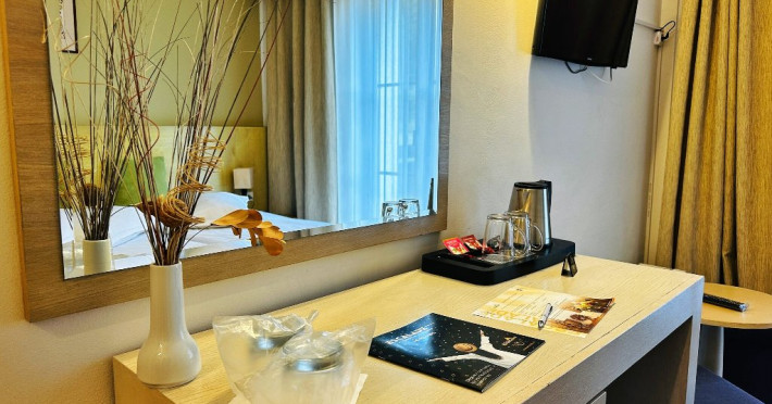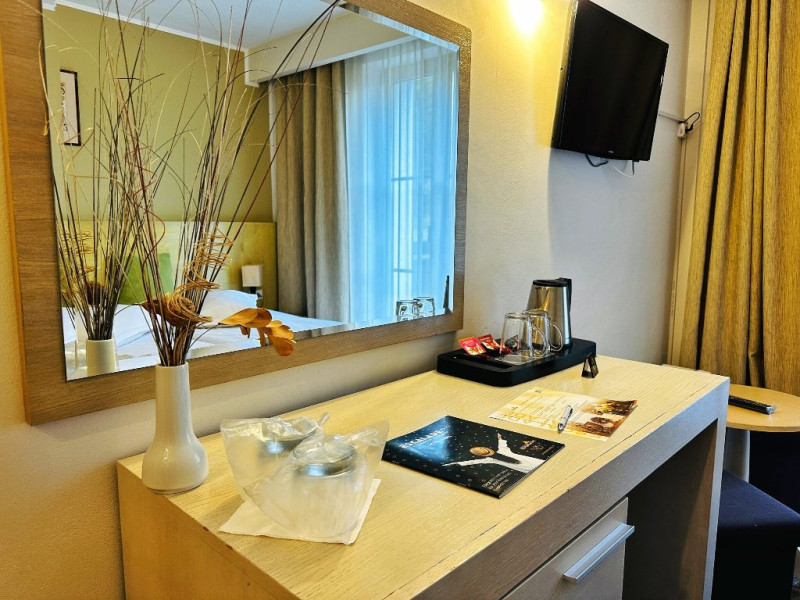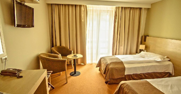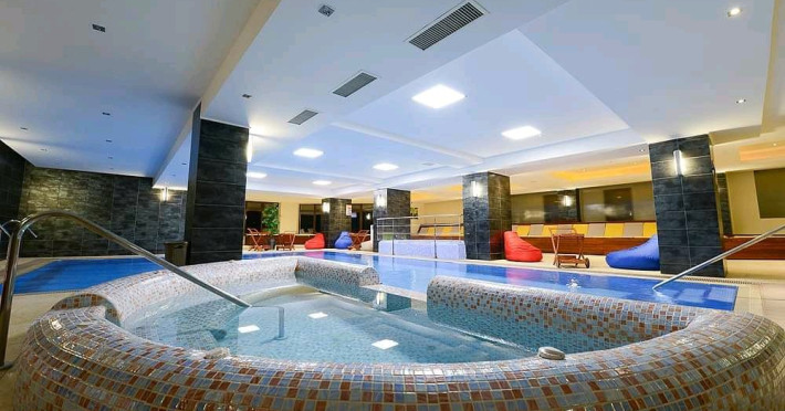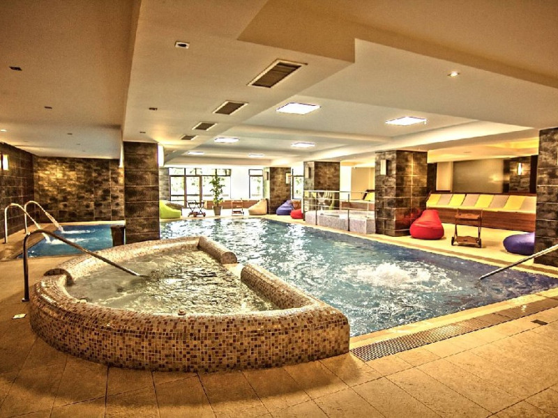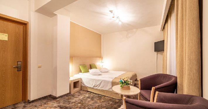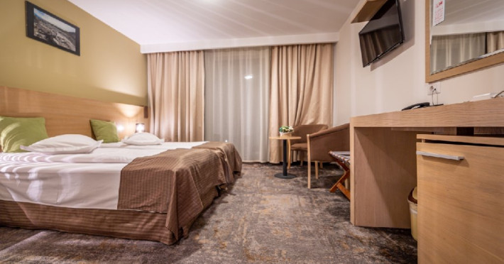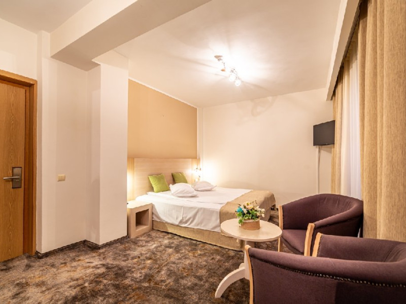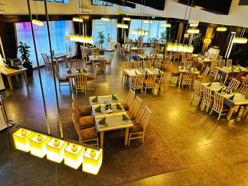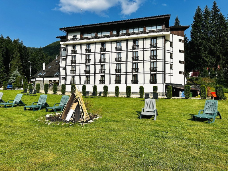 INFORMATII GENERALE Hotel Escalade se afla in statiunea Poiana Brasov, la o distanta de numai 100 m de telecabina, telegondola, partia de ski si snowboard, patinoar si partia de saniute. DESCRIERE UNITATE DE CAZARE Indiferent de sezon, Escalade Hotel isi propune sa ofere oaspetilor sai un sejur imbietor la standarde ridicate, fiind o alegere potrivita pentru cei care, fie doresc sa isi petreaca o vacanta linistita in familie, fie sa practice sporturile de iarna sau sa organizeze un eveniment festiv sau o conferinta. FACILITATI UNITATE Hotelul dispune de parcare proprie, restaurant cu terasa, centru SPA, sala fitness, locuri si sali de joaca pentru copii, bowling, sali de conferinte si evenimente. Centrul SPA are dotari de ultima generatie si ofera acces la piscina interioara, jacuzzi, sauna (uscata sau umeda), salon de masaj si centru fitness. De asemenea, pista de bowling sta la dispozitia oaspetilor, precum si o sala de joaca si jocuri atat pentru cei mici cat si pentru cei mari, dotata cu masa de biliard, darts, tenis de masa. Hotel Escalade dispune de un spatiu de joaca pentru copii si in exteriorul unitatii de cazare, langa terasa. DESCRIERE CAMERE Camerele Standard 3* au o suprafata de 18 mp si dispun de pat matrimonial sau doua paturi twin. Camerele Executive 4* au suprafata de 20 mp si dispun de pat matrimonial sau doua paturi twin. Apartamentele 3* cu suprafata de 35 mp au un pat matrimonial si o canapea extensibila. Unele camere sunt dotate cu balcon mic. Printre dotarile camerelor se numara: baie proprie, TV, Wi-Fi, minibar, senzor incendiu, telefon, uscator de par. LOCALIZARE Hotel Escalade se afla in statiunea Poiana Brasov, la o distanta de numai 100 m de telecabina, telegondola, partia de ski si snowboard, patinoar si partia de saniute. ATRACTII TURISTICE Masivul Postavaru, Muntele Tampa, Canionul Sapte Scari, Biserica Neagra, Pietrele lui Solomon. POLITICI Nu se accepta animale de companie. SERVICII DE MASA Restaurantul Lobby isi ateapta in fiecare zi clientii la un mic dejun savuros, un pranz sau o cina cu preparate traditionale si internationale. Barul de zi are o capacitate de 70 locuri si este locul ideal unde putei savura cocktail-uri si bauturi rafinate, insotite de momente de relaxare. Terasele hotelului ofera o priveliste deosebita imbinata cu linitea si aerul curat al Muntilor Carpati. FACILITATI COPII Pista de bowling sta la dispozitia oaspetilor, precum si o sala de joaca si jocuri atat pentru cei mici cat si pentru cei mari, dotata cu masa de biliard, darts, tenis de masa. Hotel Escalade dispune de un spatiu de joaca pentru copii si in exteriorul unitatii de cazare, langa terasa. FACILITATI EVENIMENTE Hotelul dispune de trei sali de conferinte.