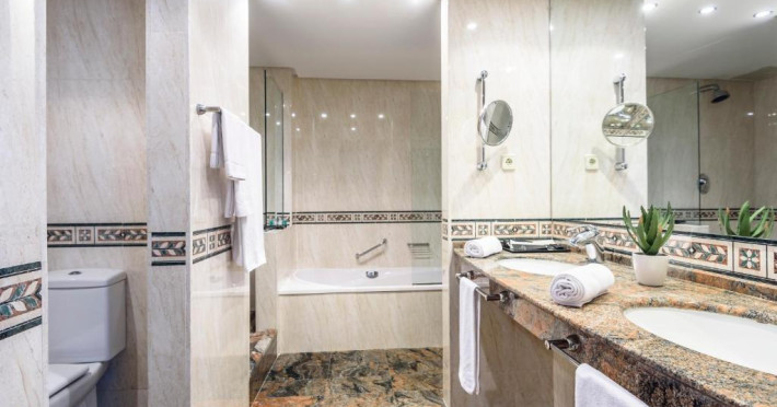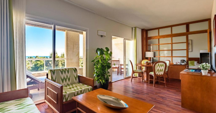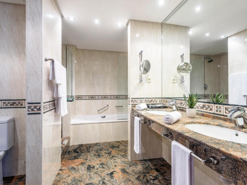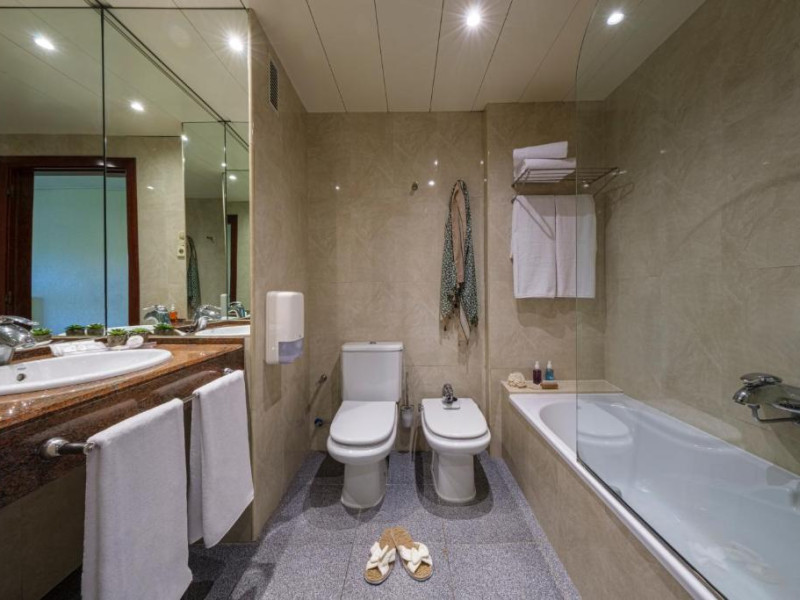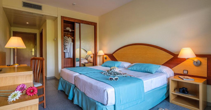 Camerele cu aer condiționat de la Hotelul Estival Park Silmar au balcon privat și TV prin satelit. Băile private sunt dotate cu uscător de păr.