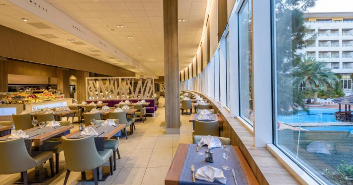 Hotelul oferă 3 restaurante tip bufet care servesc preparate mediteraneene. Există, de asemenea, 4 snack baruri și 3 baruri la piscină, unde puteți savura o gustare sau o băutură.