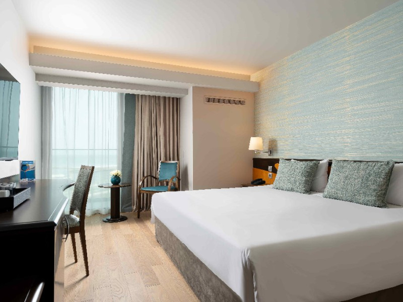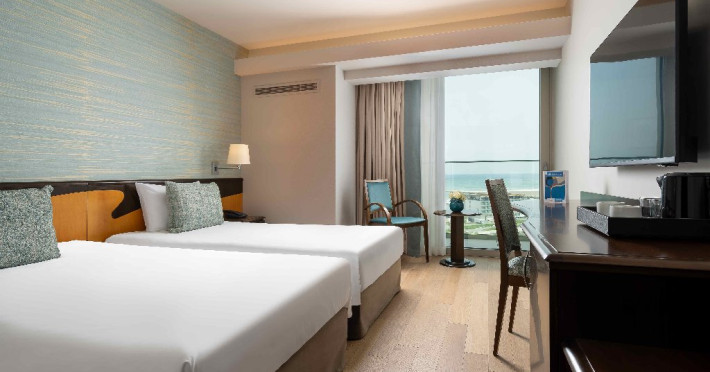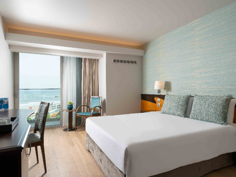 Dotari camere: aer conditionat, TV, minibar, seif, baie cu cada -sau dus, balcon, internet, uscator de par, telefon, priza pentru aparat de ras in baie, vedere la mare, papuci si halate.