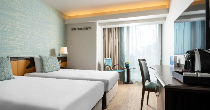 FACILITATI COPII (in camera cu 2 adulti): CAMERA DUBLA TWIN INFINITY- capacitate maxima 2 adulti si 2 copii 0-11 ani; 2 adulti si 2 copii: 1 copil 0-11 ani+ 1 copil 12-17 ani; 3 adulti. Intr-o camera dubla se accepta un singur pat suplimentar.