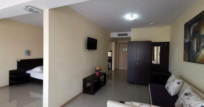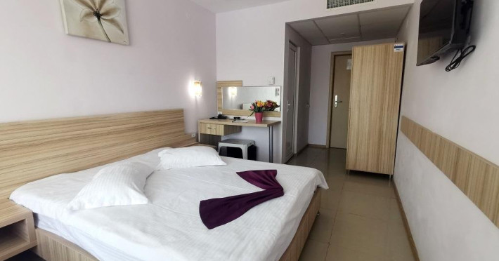 Dotari camere: aer conditionat, TV, minibar, baie cu dus, balcon -cu mobilier de balcon (masuta si scaune), suport rufe, internet -wireless, uscator de par, plasa de insecte, telefon, pardoseala din gresie. Accesul in camere se face pe baza de cartele electromagnetice, ceea ce ofera turistilor o deplina siguranta. Cardul de acces in camera se lasa obligatoriu la receptie, in situatia in care clientii nu sunt in hotel.