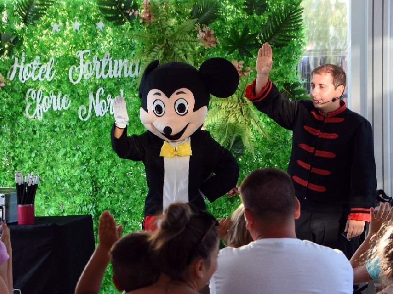 DIVERTISMENT PENTRU COPII Echipa de animatie va organiza jocuri, concursuri, teatru interactiv si multe alte suprize atractive pentru prichindei! Activitatile noastre amuzante le vor dezvolta ageritatea si creativitatea, iar concursurile le vor aduce premii haioase de care suntem siguri ca se vor bucura! Programul de divertisment se desfasoara zilnic, accesul fiind gratuit pentru oaspetii hotelului.