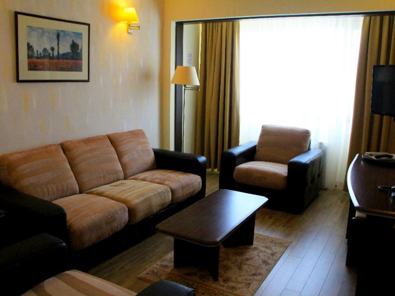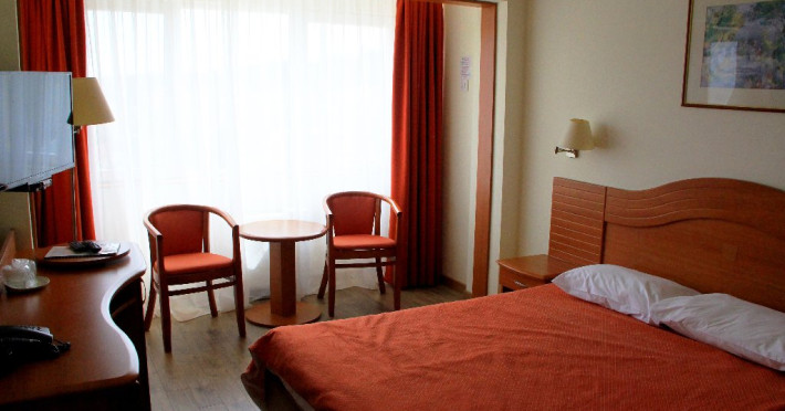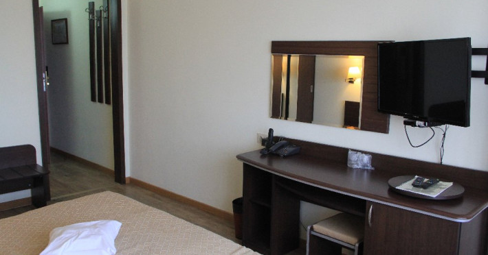 DESCRIERE CAMERE: dispune de 144 camere duble cu balcon sau fara si apartamente (cate 3 pe etaj) avand posibilitatea de a plati un supliment de front view.