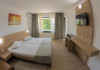 DESCRIERE CAMERE Numar total camere: 130 Camere duble: 126 (110 situate la etaj si 16 la parter) - camere cu pat matrimonial, cu suprafata de 17 mp. Cele 16 camere duble de la parter sunt identice ca suprafata, structura, insa nu au balcon si aer conditionat, iar ferestrele au gratii.