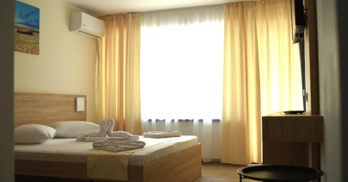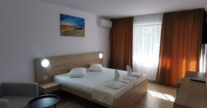 Dotari camere: TV LED, aer conditionat, minibar (racitor), baie cu cadita si dus, balcon cu masa si scaune- la camerele de la etaj, mobilier nou, uscator de par la cerere.