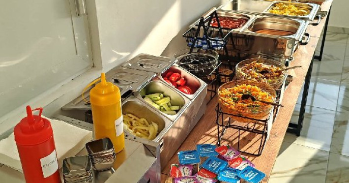 SERVICII MASA Micul dejun se asigura in sistem bufet suedez, in salonul de mic dejun situat la etajul 1 (nivel cu receptia).