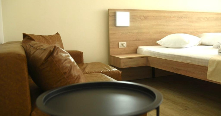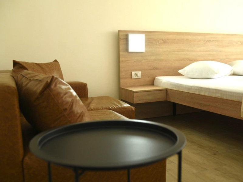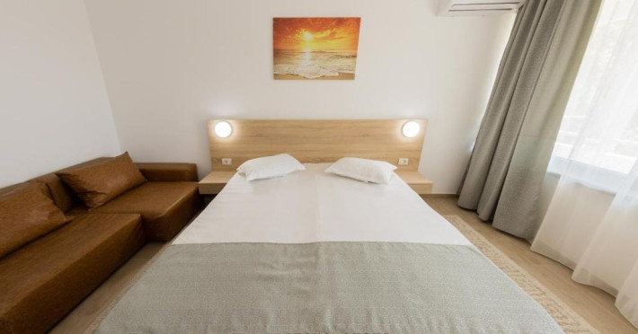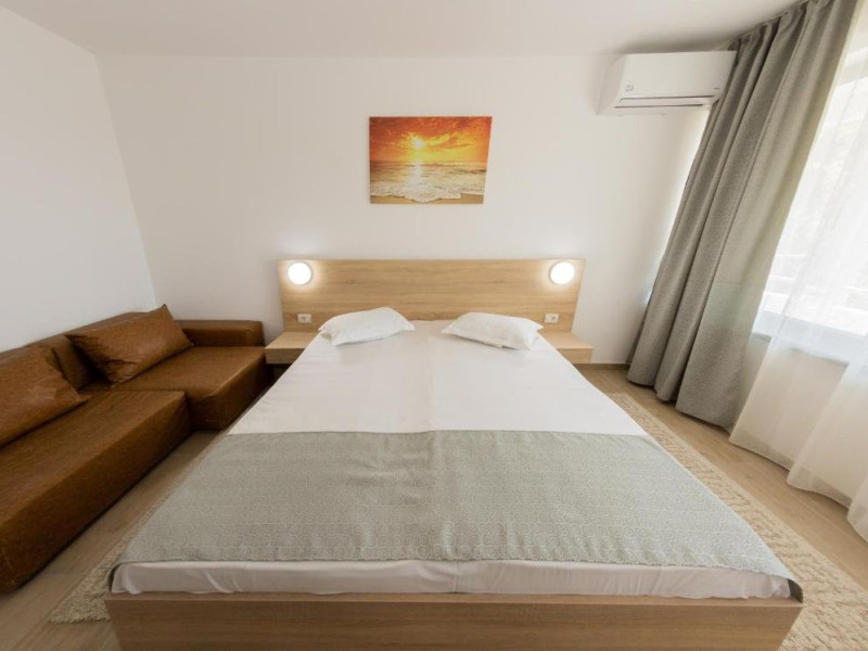 Apartamente: 4 Apartamentele sunt formate dintr-un dormitor cu pat matrimonial, o camera de zi cu canapea extensibila, o baie, conectate printr-un hol, au doua balcoane dotate cu masuta si scaune.
