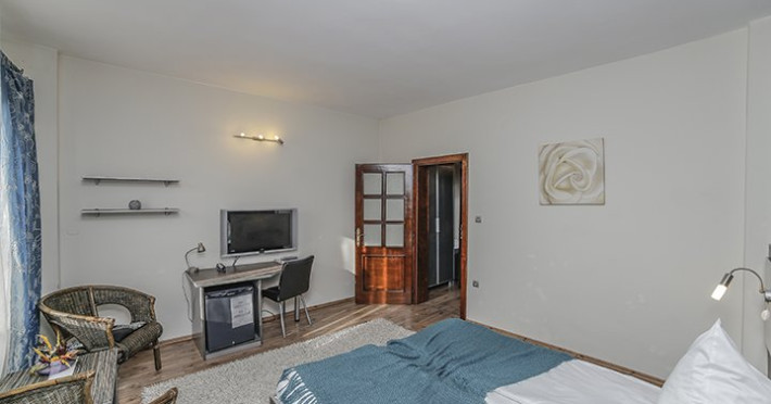 Camera tripla confort - camere elegante, cu mobilier din lemn masiv si un design special, dispunand de balcon, birou de lucru,televizor LCD, uscator par. Este dotat cu un pat matrimonial cu o saltea tip dormeo si canapea extensibila.