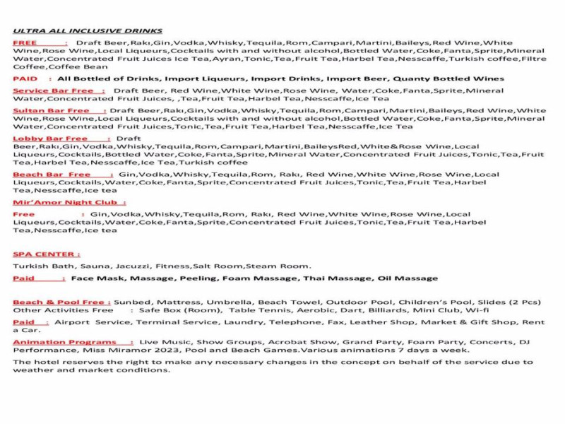 MIRAMOR HOTEL & Spa - ULTRA ALL INCLUSIVE SELECTION se află in Kemer, la 7 minute de mers pe jos de Plaja Camyuva, și oferă o grădină, o zonă de plajă privată, un lounge comun și parcare privată gratuită. Printre facilitățile disponibile la această proprietate se numără un restaurant, un club pentru copii și room-service, precum și WiFi gratuit in intreaga proprietate. Oaspeții au la dispoziție o piscină in aer liber, facilități de conferințe și petreceri, un centru de fitness, o terasă, o piscină interioară, o saună și un parc acvatic.