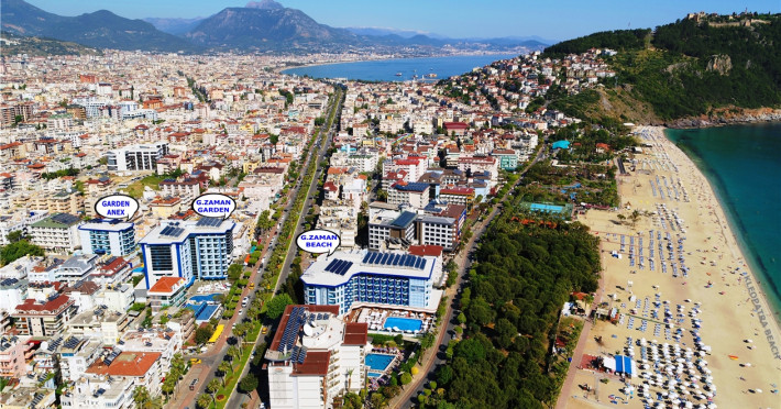 Vă veți bucura de atmosfera liniștită a soarelui și a mării, iar datorită locației centrale aveți șansa de a ajunge la cațiva pași la istoricul Turn Roșu, Castelul Alanya, casele vechi din Alanya, Peștera Damlatas, Portul cu mai multe centre de divertisment, zone comerciale și, de 2 ori pe săptămană, bazarul, precum și diverse activități interesante. Echipa de la recepție va organiza pentru dumneavoastră diferite excursii zilnice prin care puteți explora Alanya.