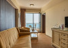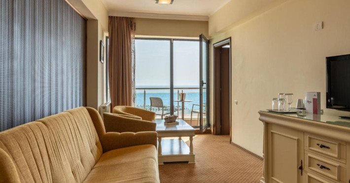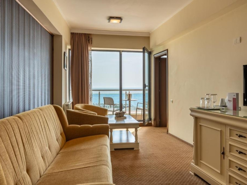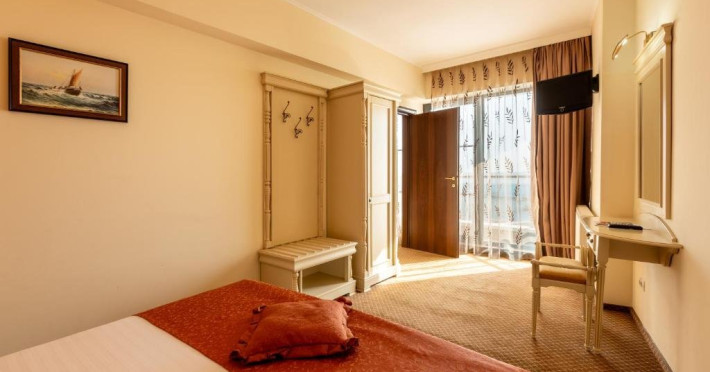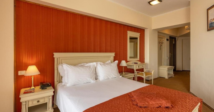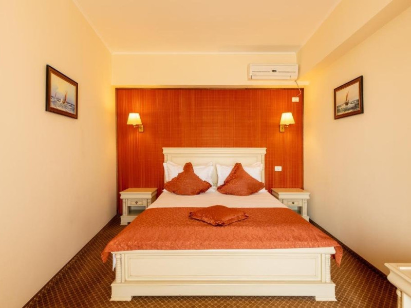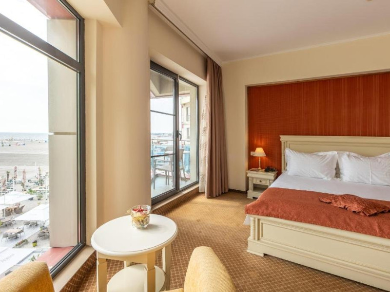 DESCRIERE CAMERE Dotari camere: sistem de acces control in camera pe baza de cartele magnetice, acces la High Speed Internet wireless gratuit, TV led, instalatie de climatizare, minibar, safe, grup sanitar cu cabina de dus, uscator de par, telefon, balcoane cu vedere frontala la mare. Numar total camere: 30 Duble: 5 Apartamente: 25 - apartamentul este compus din living cu canapea extensibila si dormitor.