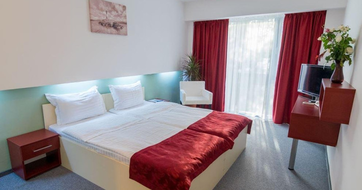 DESCRIERE CAMERE Numar total camere: 48 Dotari camere: paturi twin unite, aer conditionat, TV- LED, minibar, seif, baie cu cada, uscator de par, telefon.