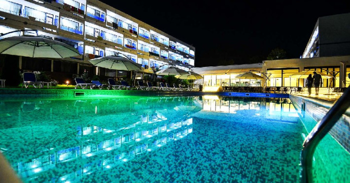 INFORMATII GENERALE Hotelul Holiday Blue, COMPLET MODERNIZAT 2019-2020, este situat intr-o zona linistita, plina de verdeata, intre statiunile Neptun si Olimp.
