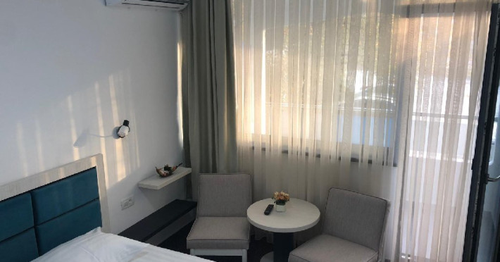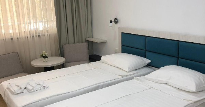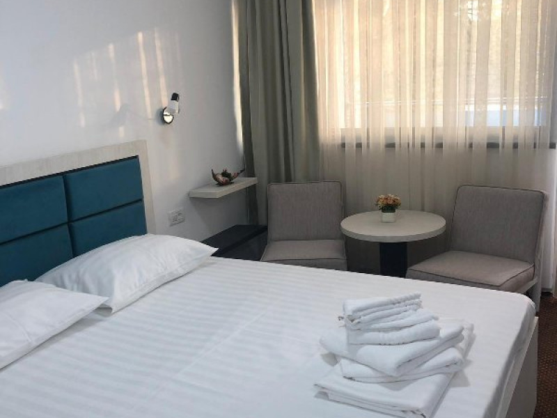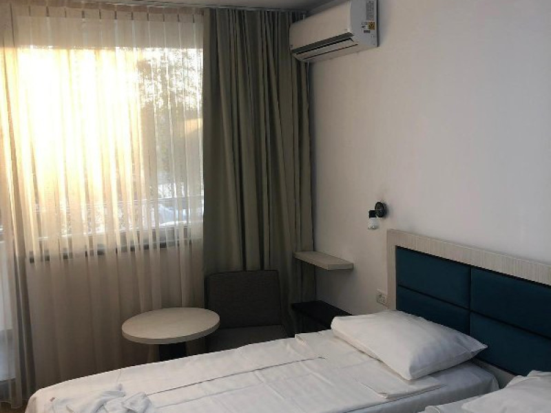 DESCRIERE CAMERE Dotari camere: COMPLET MODERNIZATE 2019-2020, aer conditionat, TV, frigider, baie cu dus, balcon -la camerele de la etaj, internet wireless (acces gratuit). Numar total camere: 225 - Hotelul este compus din 2 corpuri cu 4 nivele fiecare. Duble: 225