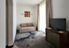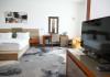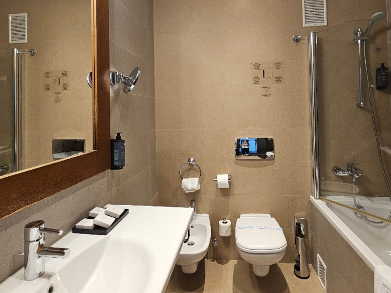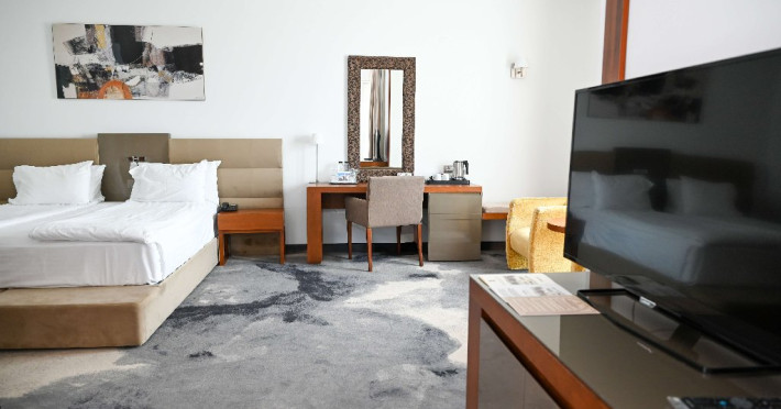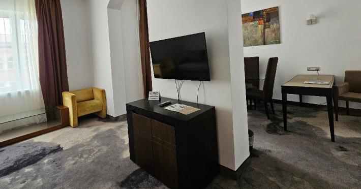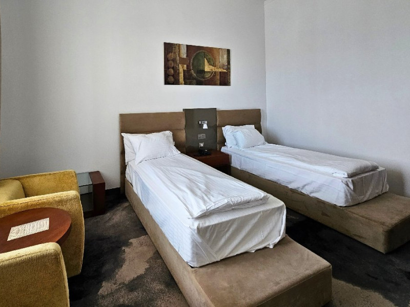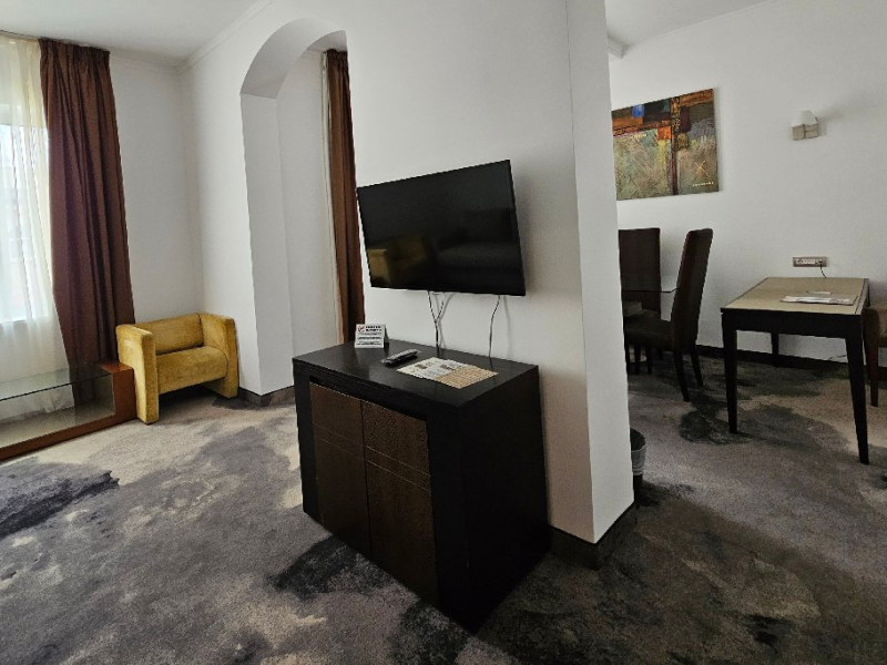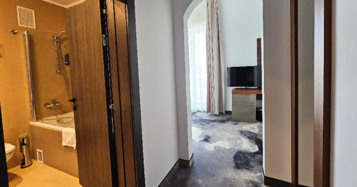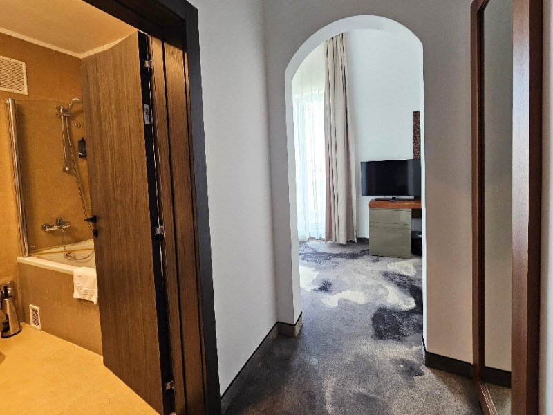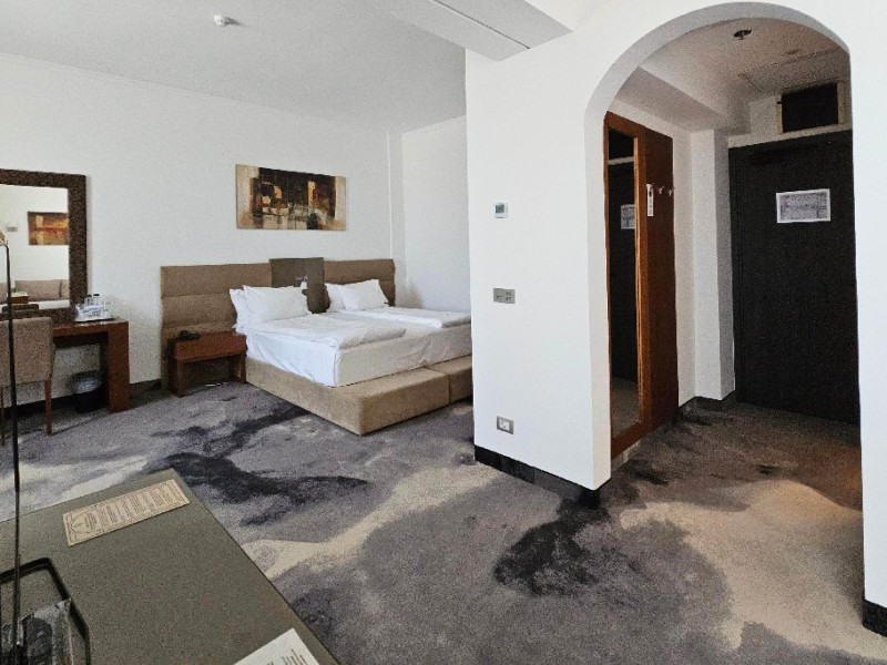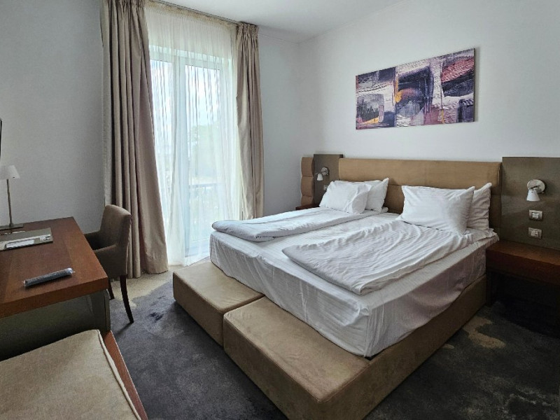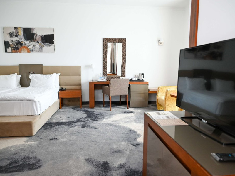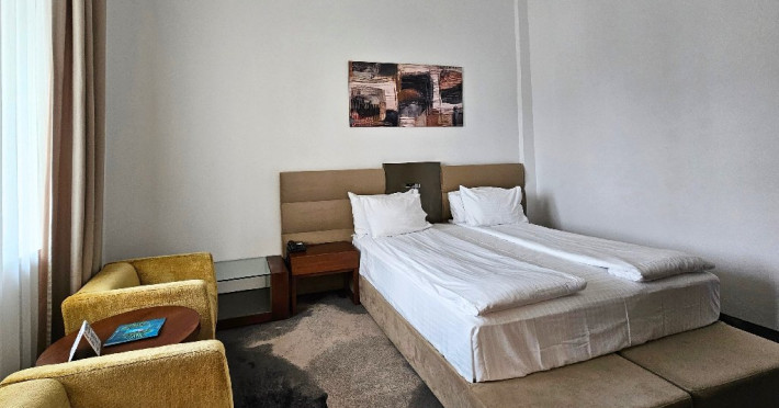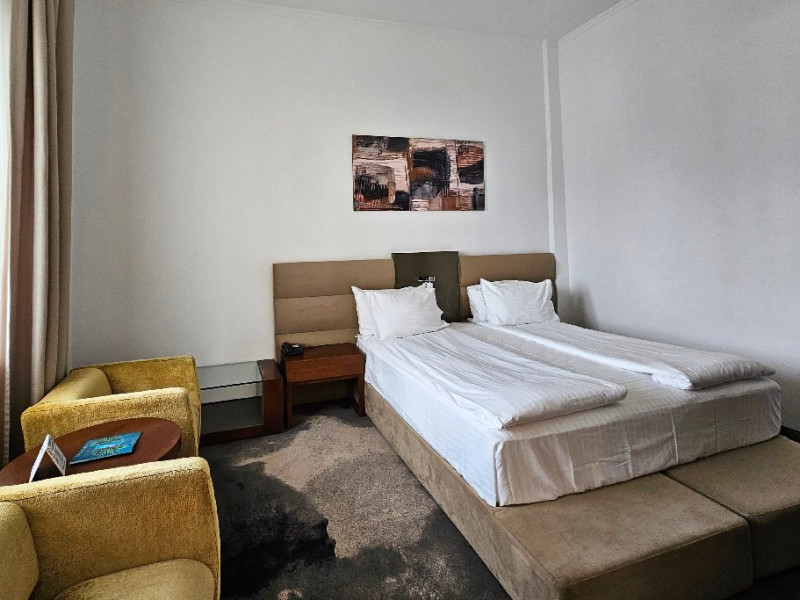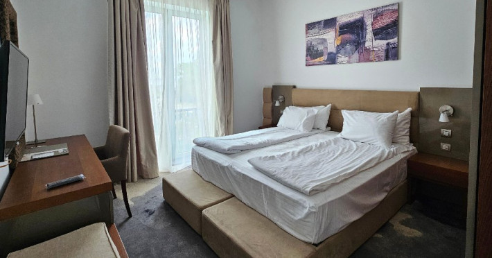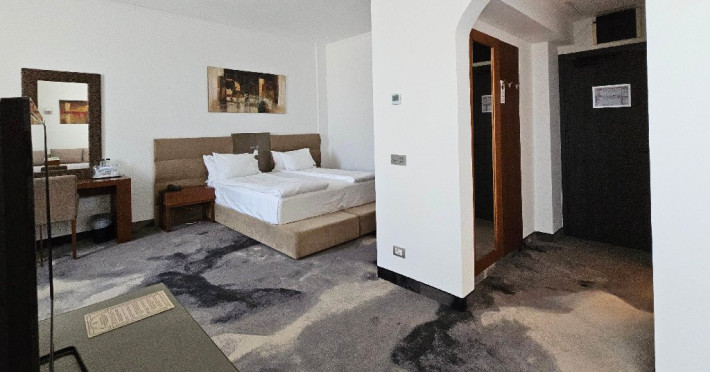 DESCRIERE CAMERE Cu o capacitate totala de 122 de camere si apartamente (244 de locuri), IAKI Conference Spa Hotel ofera o varietate de optiuni de cazare, concepute pentru a asigura un sejur de exceptie. Camerele si apartamentele Hotelului Iaki Conference Spa au sistem de ventilatie, TV prin cablu si minibar. Pentru unele tipuri de unitati sunt oferite pachete speciale, in functie de date.Incepand cu 2025, aripa istorica a hotelului - etajele 1, 2 si 3 - care gazduieste camerele si apartamentele premium, a intrat intr-un amplu proces de mentenanta. Aceste lucrari vizeaza inlocuirea mochetei din holuri si camere, a usilor interioare si exterioare, precum si actualizarea tamplariei ferestrelor cu sisteme moderne din aluminiu, proiectate pentru a asigura o izolare fonica superioara si confort termic optim, prin utilizarea geamurilor tripan cu protectie UV integrate, acestea contribuind la reducerea radiatiilor solare si mentinerea unei temperaturi ambientale constante. Sistemul de acces in camere si ventilatia au fost, de asemenea, actualizate pentru a raspunde standardelor contemporane de confort si securitate. Duble: 84 - dintre care 62 camere standard- (pat matrimonial sau cu paturi separate), o parte din camere au vedere spre mare; 20 camere superior cu paturi separate (se pot uni sau desparti), dispun de balcon, dormitor, hol mic cu fotolii si masuta (in prelungirea dormitorului), canapea extensibila, au vedere spre mare sau spre lac si 2 camere duble executive cu paturi separate (se pot uni sau desparti), canapea extensibila, terasa cu vedere frontala la mare. Apartamente: 38 - dintre care 24 apartamente standard cu paturi separate (se pot uni sau desparti), living cu canapea extensibila, au vedere spre mare sau spre lac; 6 apartamente superior dispun de dormitor cu pat matrimonial, living cu canapea extensibila, hol, au vedere spre lac; 5 apartamente executive cu pat matrimonial, canapea extensibila, terasa cu vedere frontala la mare si 2 apartamente prezidentiale- dispun de 2 dormitoare (unul cu paturi separate; unul cu pat matrimonial), living, 2 bai, vedere spre mare.Aripa istorica (etajele 1-3): a intrat intr-un proces amplu de mentenanta incepand cu 2025. Lucrarile includ inlocuirea mochetei, a usilor (interioare si exterioare) si modernizarea tamplariei ferestrelor cu sisteme din aluminiu cu geam tripan si protectie UV pentru izolare fonica si confort termic superior. De asemenea, sistemul de acces in camere si ventilatia au fost actualizate.