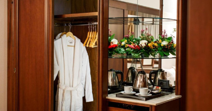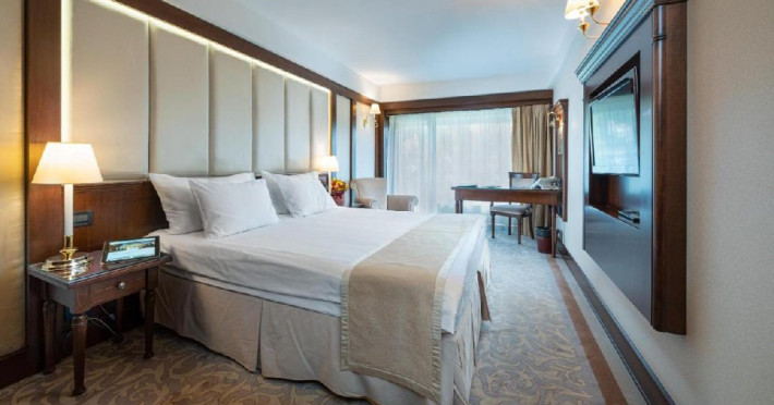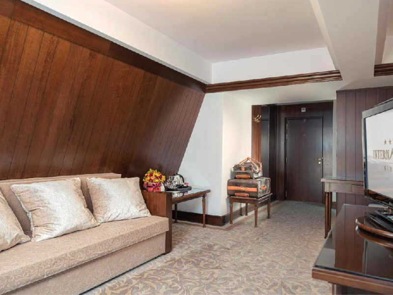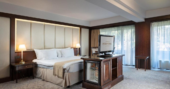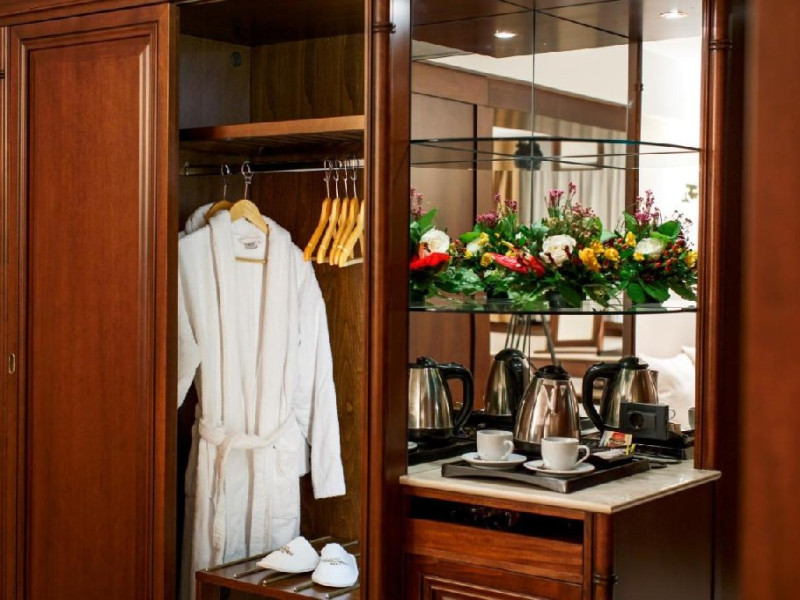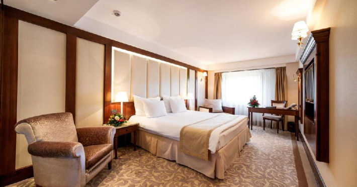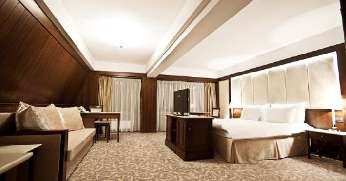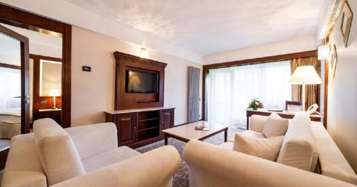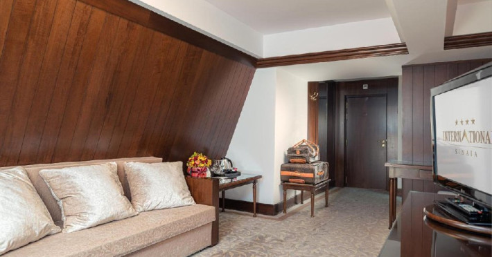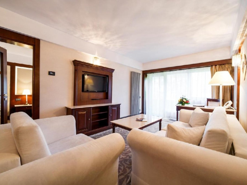 - 14 JUNIOR SUITE, 30-35 mp, pat king size, canapea extensibila, accesgratuit la internet de mare viteza Wi-Fi, camera de nefumatori, sky shower,halate de baie, papuci personalizati, seif, linie telefonica directa, TV LED de32 (81cm), canale TV internationale, pay Tv, minibar, uscator de par,facilitate de cafea si ceai