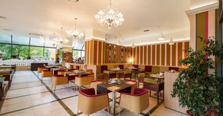 FACILITATI UNITATERestaurant PANORAMIC - restaurant classic - capacitate 350 locuri, Restaurant ITALIAN - specific italian - capacitate 80 - 100 locuri, Restaurant TIROL - specific tirolez - capacitate 130 - 150 locuri, Centru SPA piscina, jacuzzi, sauna umeda, sauna uscata, sala fitness, parcare. Centrul de Divertisment, are 4 piste de bowling, 2 mese debiliard, diverse jocuri (Darts, Air Hockey, Fusball) si un cafe-bar.