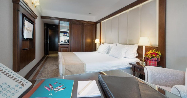 - 6 ONE BEDROOM SUITE, 50 mp, pat king size, canapea extensibila, cada cuhidromasaj, aer conditionat, acces gratuit la internet de mare vitezaWi-Fi, camera de nefumatori, sky shower, halate de baie, papuci personalizati,seif, linie telefonica directa, TV LED de 32 (81cm), canale TV internationale,pay Tv, minibar, uscator de par, facilitate de cafea si ceai.