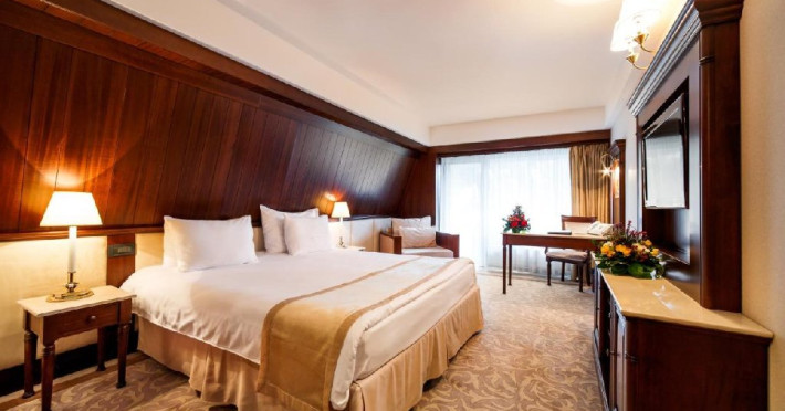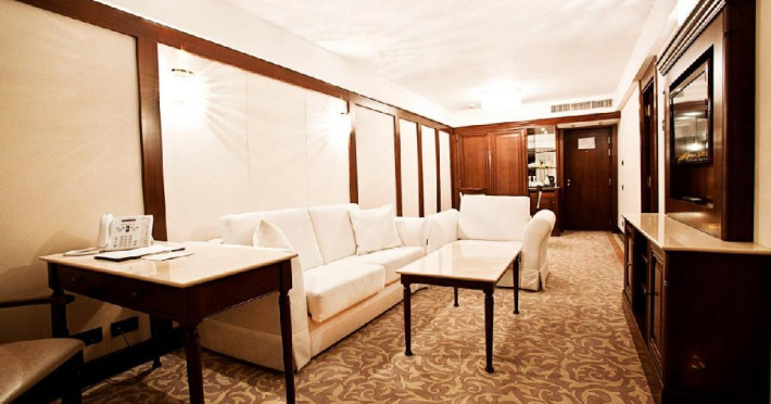 - 7 EXECUTIVE JUNIOR SUITE, 40-45 mp, pat king size, canapea extensibila, acces gratuit la internet de mare viteza Wi-Fi, camera de nefumatori, skyshower, halate de baie, papuci personalizati, seif, linie telefonica directa,TV LED de 32 (81cm), canale TV internationale, pay Tv, minibar, uscator depar, facilitate de cafea si ceai