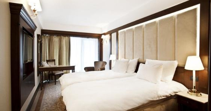 - 6 CAMERE DUBLE DELUXE , 25 mp, pat king size, fotoliu extensibil, acces gratuit la internet de mare viteza Wi-Fi, camera de nefumatori, sky shower, halate de baie, papuci personalizati, seif, linie telefonica directa, TV LED de32 (81cm), canale TV internationale, pay Tv, minibar, uscator de par,facilitate de cafea si ceai