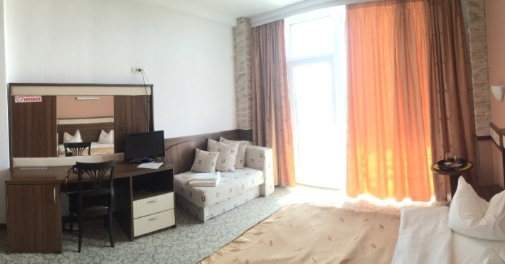 FACILITATI COPII Copiii 0- 6 ani se beneficiaza de cazare gratuita daca nu se solicita pat suplimentar; Copiii 7- 17 ani achita costul patului suplimentar; Pentru al doilea copil in camera se va achita costul patului suplimentar indiferent de varsta copiilor.Camera Dubla Vedere Partiala la Mare- capacitate maxima: 2 adulti si 2 copii: 1 copil 0- 6 ani + 1 copil 7- 17 ani sau 3 adulti Camera Dubla Premium Vedere Mare- capacitat maxima: 2 adulti si 2 copii: 1 copil 0- 6 ani + 1 copil 7- 17 ani sau 3 adulti In camere se poate introduce 1 singur pat suplimentar.