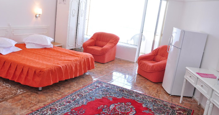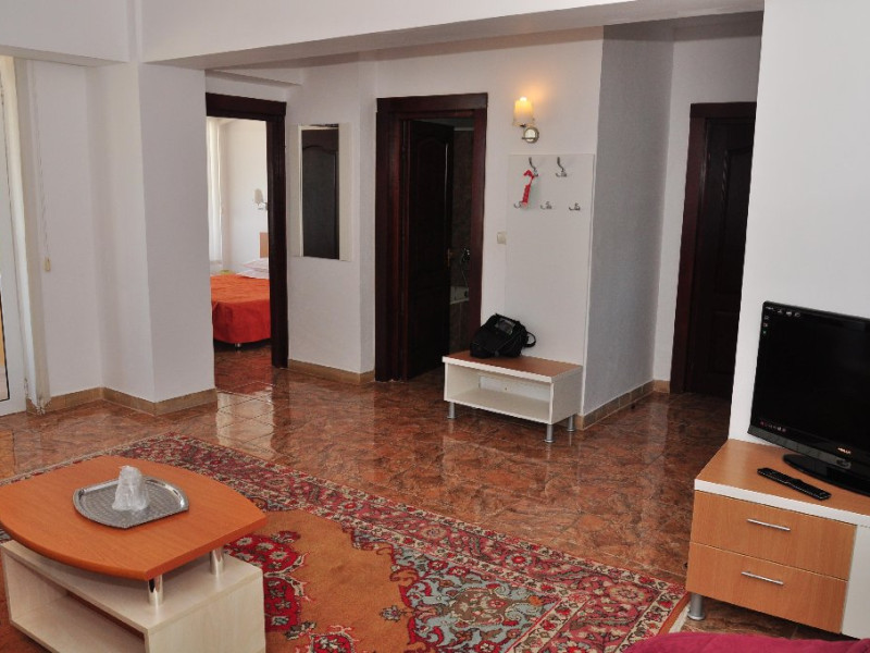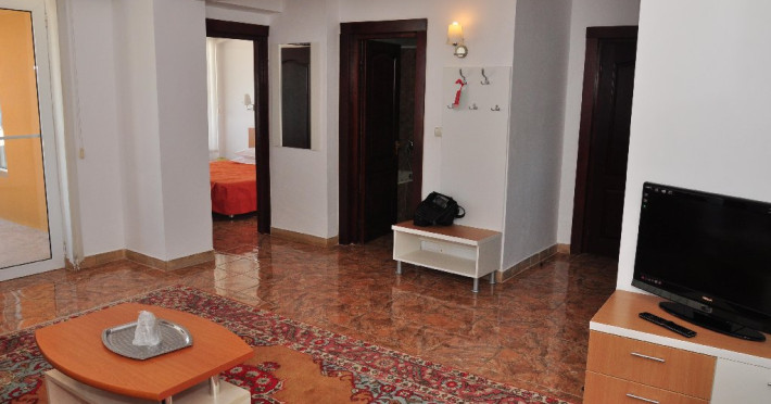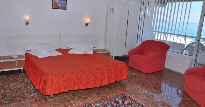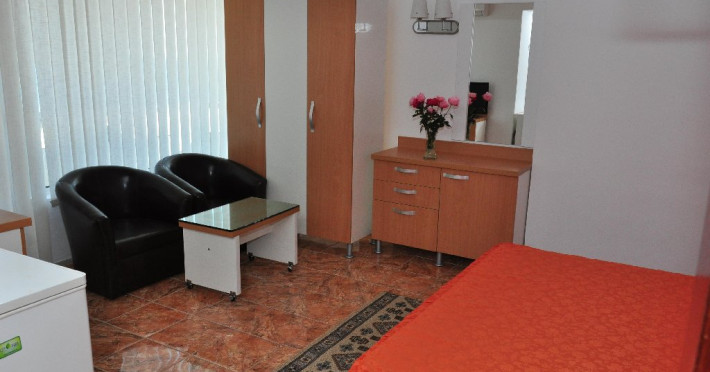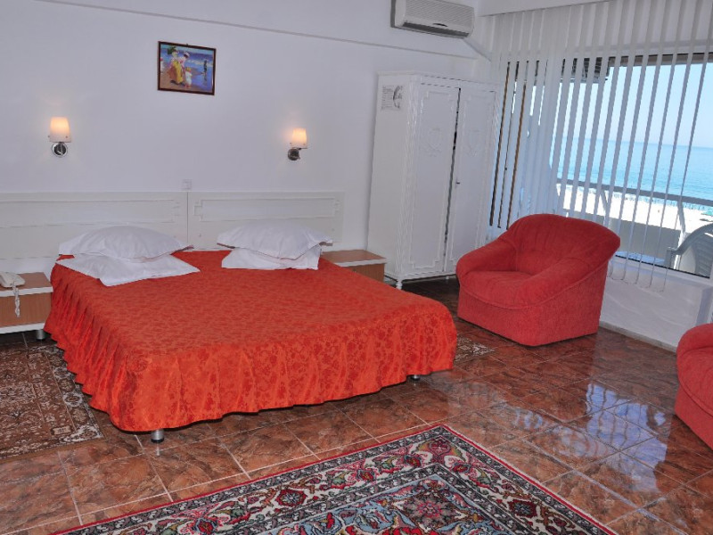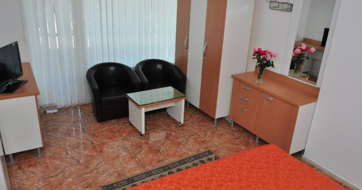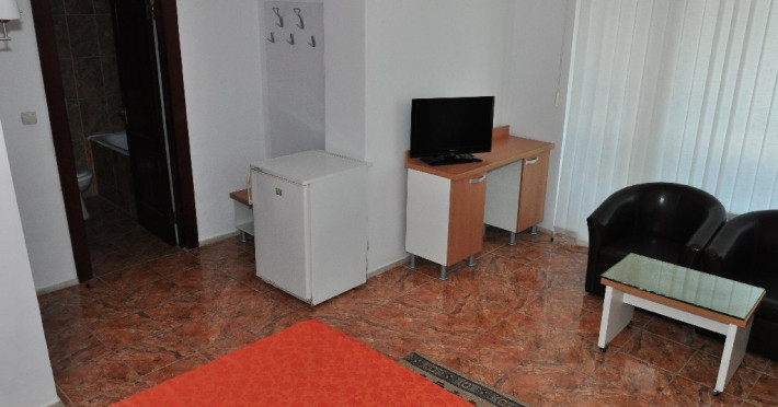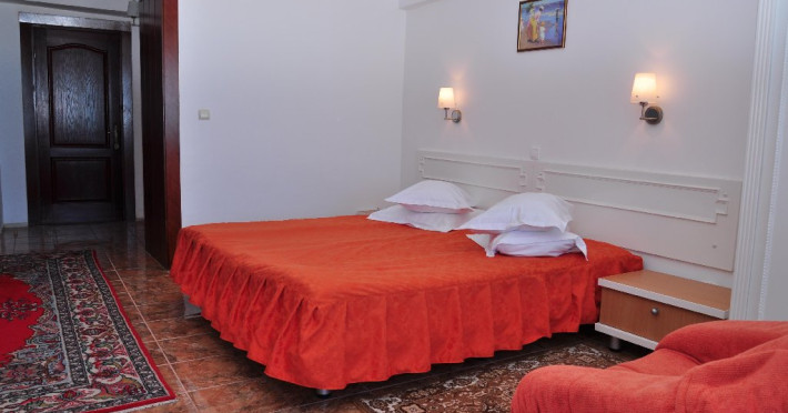 DESCRIERE CAMERE Numar total camere: 129 Duble: 106 Apartamente: 4 - apartamentul este compus din living cu canapea extensibila si dormitor. Familiale: 8 - pat matrimonial si doua paturi suprapus epentru copii. Garsoniere: 11 - garsoniera dispune de pat matrimonial si canapea extensibila. Dotari camere: aer conditionat, TV, minibar, baie cu cada, balcon, telefon, pardoseala cu gresie.