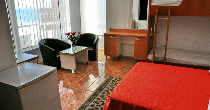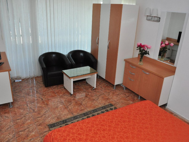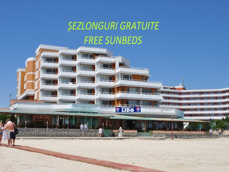 DESCRIERE UNITATE DE CAZARE In intervalul 01.06 - 30.09 se asigura GRATUIT: 2 sezlonguri/ camera dubla, 3 sezlonguri/camera family si garsoniera, 4 sezlonguri/ apartament respectiv 1 sezlong/ camera single. FACILITATI UNITATE DE CAZARE Dotari generale: parcare proprie -gratuita in limita disponibilitatilor, internet -wireless gratuit in receptie, hotelul are 5 nivele, lift, bar de zi. Servicii: Incluse in tarif: pastrarea obiectelor de valoare, acordarea de prim ajutor, servicii postale, informatii turistice, comenzi taxi, trezirea turistilor; Contra cost: servicii telefonice, inchiriere jocuri.