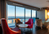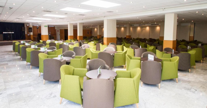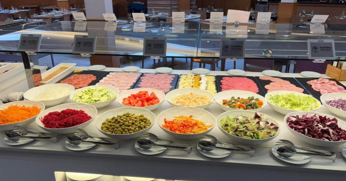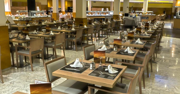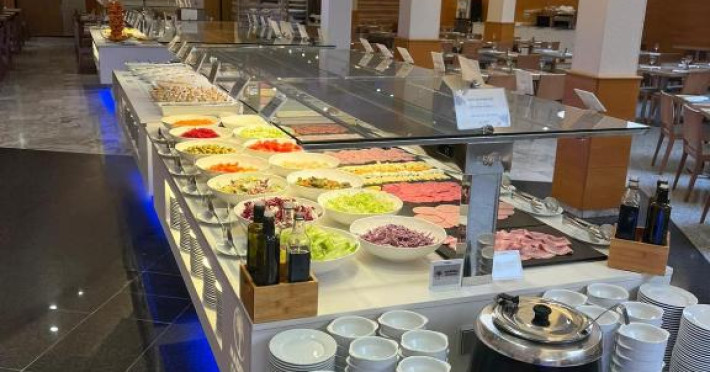 Există, de asemenea, un bar și un restaurant tip bufet care servește preparate din bucătăria mediteraneană și cine tematice o dată pe săptămană.