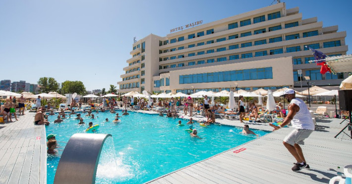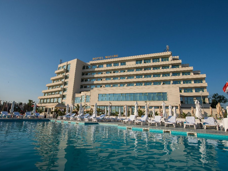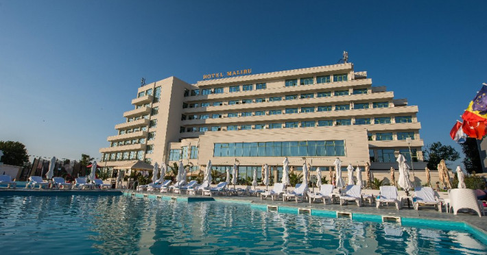 LOCALIZARE Hotelul MALIBU este amplasat la intrarea sudica in statiuneaMamaia, fiind marginit de plaja cu nisip fin si de apele lacului Tabacarie.