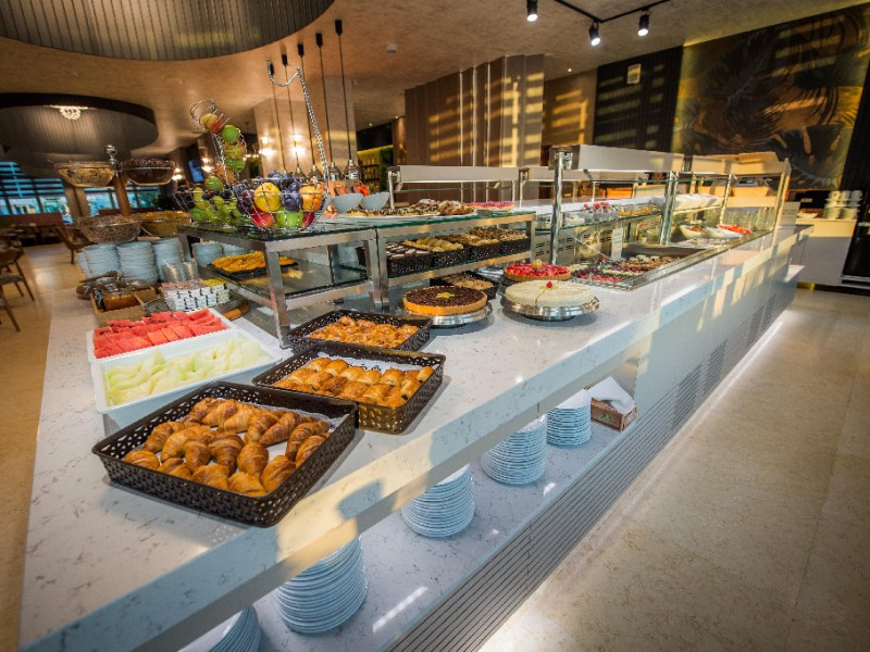 SERVICII MASA Mesele se organizeaza in sistem bufet daca exista un numar minim de 40 de persoane, care au achitat serviciul respectiv de masa. In perioada 28.06-07.09.2024 (inclusiv) se vor comercializa pachete cu MINIMUM DEMIPENSIUNE (PRANZ), pachetele doar cu mic dejun nefiind acceptate in acest interval. In suplimentele de demipensiune este inclus pachetul de bauturi care include: apa purificata la dozator, racoritoare draft din gama Coca Cola, bere draft, vin alb/rosu/roze la carafa. Acestea se vor servi in restaurantul hotelului, doar in intervalul orar al meselor tip bufet - pranz,aferent pachetului de demipensiune. Bauturile comandate la piscina/lobby se achita suplimentar. Produsele comandate la barurile lobby se achita suplimentar. Micul dejun si pranzul se servesc incepand cu a doua zi a sejurului si inclusiv, in ziua plecarii. Accesul la masa de pranz in ziua de check-out, se face doar dupa eliberarea camerei.