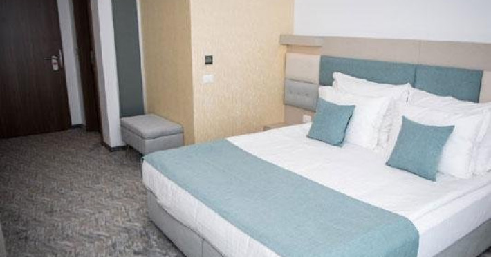 Camera dubla deluxe este situata pe colt, suprafata putin mai mare decat dubla standard, dispune de pat matrimonial.