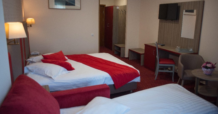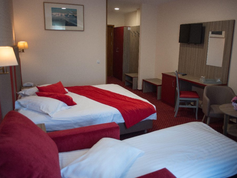 Capacitatea de cazare este de 68 de locuri, dispuse in 34 camere (17 camere duble matrimoniale si 17 camere duble twin). O parte din camere au vedere spre munte (se achita supliment pentru vedere spre munte). Dotari: minibar, TV cu canale internationale, telefon, baie cu dus, uscator de par, spatiu de relaxare cu masuta si 2 fotolii, balcon, acces gratuit wi-fi. LOCALIZARE Construit in anul 2007 si complet renovat in anul 2019, Hotelul Marea Neagra se bucura de o pozitie privilegiata, situandu-se in Cartierul Furnica, la o plimbare de 7 minute pe jos de Castelul Peles, 15 minute de Manastirea Sinaia si 10 minute de telegondola Sinaia. ATRACTII TURISTICE Muzeul Peles, Pelisor, Manastirea Sinaia, Muzeul Bucegi, Cazinoul Sinaia, Casa Memoriala G. Enescu. POLITICI Nu se permit animalele de companie. SERVICII DE MASA Se acorda in restaurantul hotelului in sistem fisa cont. De la orele 8:00 la orele 11:00 se serveste micul dejun in regim bufet suedez iar incepand cu orele 13:30 pana la orele 22:00 se pot servi si celelalte mese in regim a la carte dintr-un meniu romanesc. FACILITATI COPII Se poate adauga maxim un pat suplimentar in camera dubla. FACILITATI EVENIMENTE Sala de conferinta, capacitate de 30 locuri. Dotari: videoproiector, ecran proiectie, flipchart, laptop, consumabile, internet wireless, acces copiator, lumina naturala partiala. Dimensiuni sala: 12 m lungime, 4 m latime, 2.5 m inaltime.
