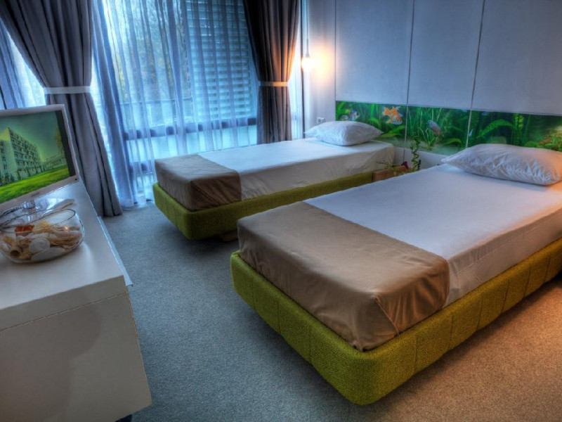 Tipul de camera alocat (twin sau matrimoniala) se stabiliste la momentul cazarii turistului in functie de disponibilitatea hotelului.