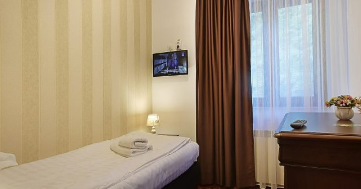 Apartament Junior. Apartamentul Junior al Hotelului Moldavia are in componenta un dormitor spatios si 1 camera mica cu un pat single. Cu o suprafata de aproximativ 31 mp, cu un mobilier elegant, apartamentul Junior va ofera pat matrimonial in dormitor, balcon privat cu priveliste deosebita, si un pat single in camera mica, WI - FI gratuit si baie cu dus.