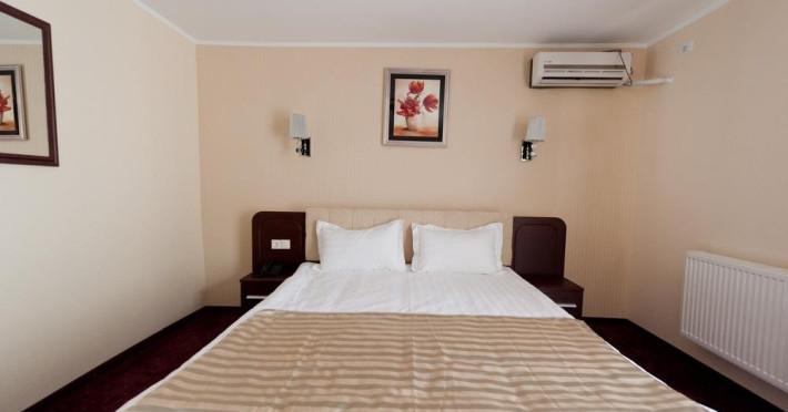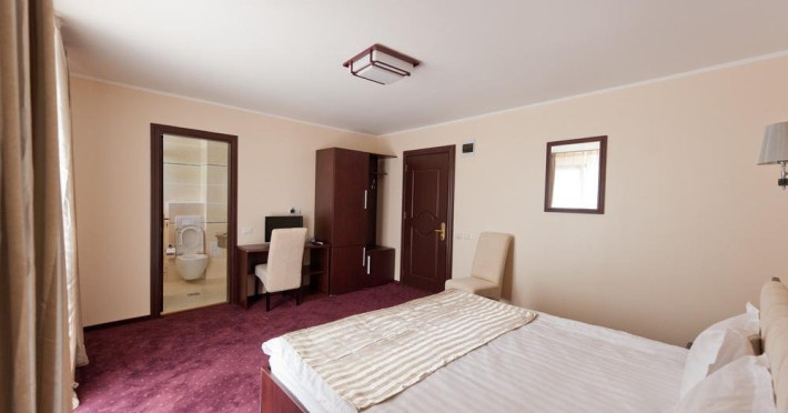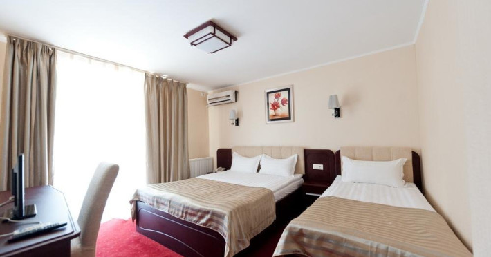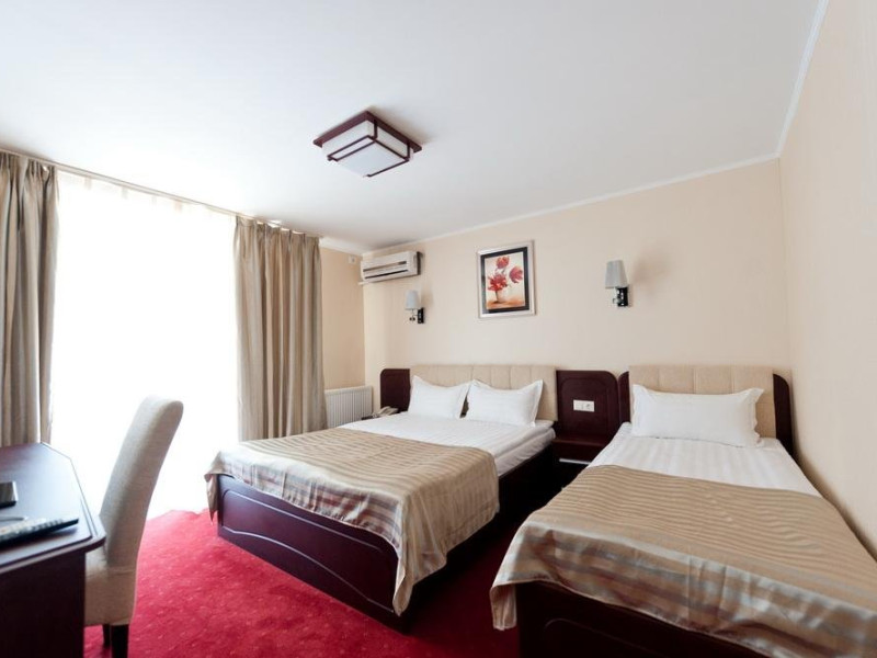 DESCRIERE CAMERE Numar total camere: 59 Duble Standard: 26 - camerele dispun de pat matrimonial (180x 200 cm). Duble Superior: 33 - camerele dispun de pat matrimonial (160x 200 cm) si pat single (90x 200 cm).